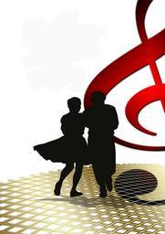 Keywords: silhouettes man woman dance dancers stand art dance couple dance rock dress movement light dance floor parquet joy swing rotation clef treble clef music