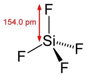 | Keywords: Silicon-tetrafluoride-2D-dimensions.png Structural formula including the Si-F bond length of the silicon tetrafluoride molecule SiF<sub>4</sub> Bond length data from Greenwood Earnshaw Own 2007-10-15 Ben Mills Benjah-bmm27 Images by Ben Mills Silicon tetrafluoride |