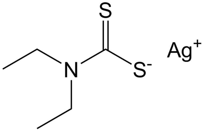 Keywords: Silver diethyldithiocarbamate.png en structure own Epop 2009-07-10 Silver compounds Dithiocarbamates