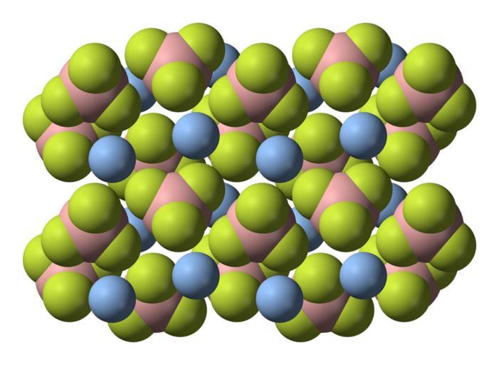 Keywords: Silver-tetrafluoroborate-xtal-3D-SF.png Space-filling model of part of the crystal structure of silver tetrafluoroborate AgBF<sub>4</sub> X-ray crystallographic data from http //dx doi org/10 1016/j solidstatesciences 2005 06 007 Solid State Sciences 2005 7 1225-1229 Model constructed in http //www crystalmaker com/ CrystalMaker 8 1 Image generated in http //accelrys com/products/discovery-studio/visualization/discovery-studio-visualizer html Accelrys DS Visualizer Own 2009-02-15 Ben Mills Benjah-bmm27 Images by Ben Mills Silver tetrafluoroborate Crystal structures in space group number 62 |