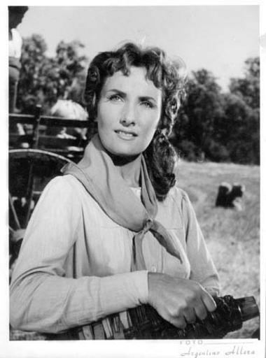 | Keywords: Silvia Legrand 1959.jpg Fotografía blanco y negro sobre papel fotográfico brillante con marco perimetral de una escena del film Campo arado con la actriz Silvia Legrand de medo cuerpo y en un exterior Con el cuerpo de tres cuartos de perfil derecho y el rostro de frente viste una camisa rayada de mangas largas y pañuelo al cuello Sostiene con sus manos y brazos una damajuana Detrás a la izquierda un carro y al fondo un monte de árboles http //www acceder buenosaires gov ar/es/td Fotografias 26/587173 1959 Allera Argentino Fotógrafo PD-AR-Photo Silvia Legrand |