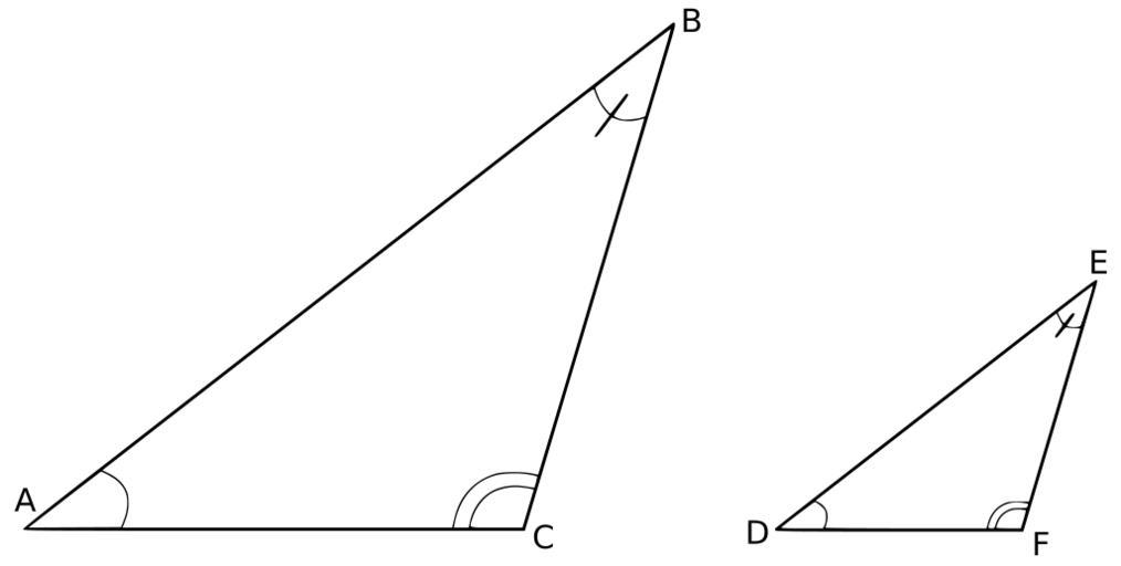 Keywords: Similar triangles blank.svg en Similar triangles with congruency markings own Adrignola 2010-11-18 High School Trigonometry