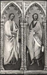 Keywords: Simone dei Crocifissi - San Giacomo Maggiore,San Giovanni Battista.jpg Artwork Creator Simone dei Crocefissi Due Santi San Giacomo Maggiore e San Giovanni Battista Two Saints James the Greater and John the Baptist Dois Santos Santiago Maior e São João Batista - 1355 1399 Tempera on panel cm 94 30 each panel MCB Dismantled from an unknown poliptych object history private collection Brazil by 1946 Brandi collection Italy A Briganti collection Rome art market London acquired by Renata Crespi and Fábio Prado São Paulo by 1990 in deposit at the Museu da Casa Brasileira São Paulo http //fe fondazionezeri unibo it/catalogo/scheda jsp decorator layout apply true tipo_scheda OA id 9676 titolo Simone+di+Filippo 0A 09 09 09+ 28Simone+dei+Crocifissi 29 0A 09 09 09+ 2c+San+Giacomo+Maggiore+ 3b+San+Giovanni+Battista PD-old-100 Other versions <gallery> File Simone_dei_Crocifissi_-_Santo _séc _XIV jpg Left panel colored </gallery> Simone dei Crocifissi Museu da Casa Brasileira Paintings from Italy in Brazil Gothic paintings in Brazil 14th-century paintings in Brazil 1355 |