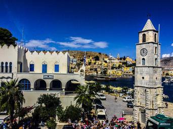 Keywords: simy island tower city palm great sun summer greece
