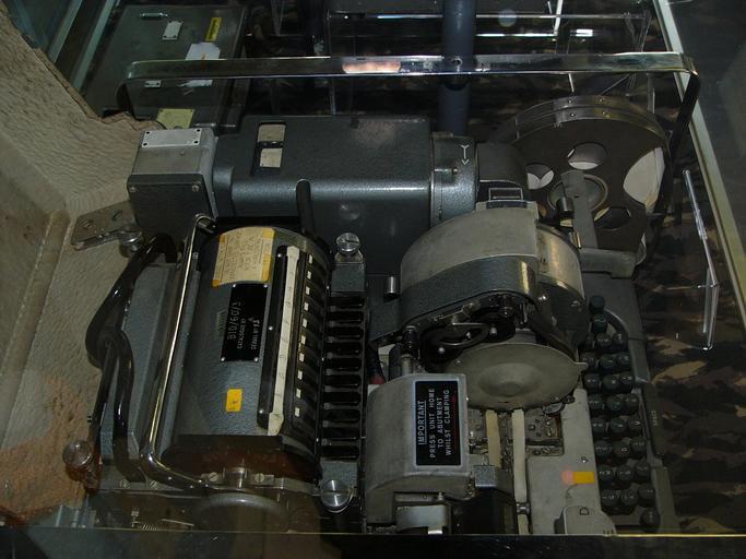 Keywords: Singlet-above-side.jpg A Singlet machine BID/60 on display at Bletchley Park's Enigma and Friends exhibition in May 2005 a display put together by David White and John Alexander Matt Crypto Cipher machines