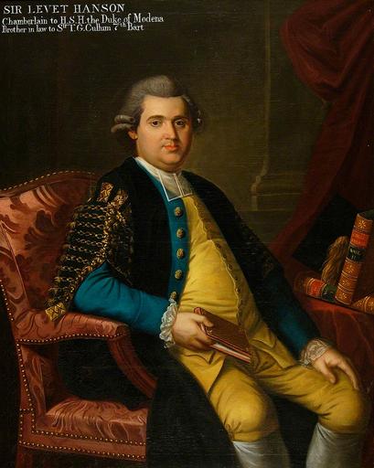 | Keywords: 'Sir' Levett Hanson (1754–1814).jpeg ~ 1790 Oil on canvas cm 126 100 credit line Courtesy of the collection of St Edmundsbury Museums St Edmundsbury Museums BBC Paintings http //www bbc co uk/arts/yourpaintings/paintings/sir-levett-hanson-kt-17541814-traveller-10722 other versions accession number 1992 9 355 PD-old-100 DEFAULTSORT 1790c; Levett Hanson Joseph Samuel Webster 18th-century oil portraits of sitting men at three-quarter length 18th-century portrait paintings in the United Kingdom Male portrait paintings with powdered wigs People of Yorkshire Pilasters in portraits Portrait paintings of men holding books Portrait paintings of men sitting in armchairs Portrait paintings of writers Red drapery in portrait paintings Three-quarter view portrait paintings of men facing right |