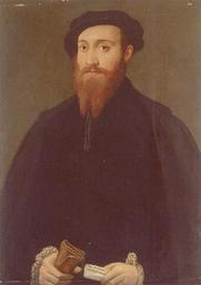Keywords: people indoor Sir Thomas Gresham (c. 1519 – 21 November 1579) was an English merchant and financier who worked for King Edward VI of England and for Edward's half-sister Queen Elizabeth I of England. Born in London and descended from an old Norfolk family, Gresham was one of two sons and two daughters of Sir Richard Gresham, a leading London merchant, who for some time held the office of Lord Mayor, and who for his services as agent of Henry VIII in negotiating loans with foreign merchants received the honour of knighthood. Though his father intended him to follow his own profession, he nevertheless sent him for some time to Gonville and Caius College, Cambridge,[1] but no information survives as to the duration of his residence. Either before or after this he became apprentice to his uncle Sir John Gresham, also a merchant, who founded Gresham's School in Holt, Norfolk in 1555: we have his own testimony that he served an apprenticeship of eight years. In 1543 the Mercers Company admitted the 24-year-old Gresham as a liveryman, and in the same year he went to the Low Countries, where, either on his own account or on that of his father or uncle, he both carried on business as a merchant and acted in various matters as an agent for King Henry VIII. In 1544 he married Anne Fernley, the widow of William Read, a London merchant, but he still continued to reside principally in the Low Countries, having his headquarters at Antwerp in present-day Belgium, where he played the market skillfully. When in 1551 the mismanagement of Sir William Dansell, king's merchant in the Low Countries, had brought the English government into great financial embarrassment, the authorities called in Gresham to give his advice, and then chose him to carry out his own proposals. He called for the adoption of various methods — highly ingenious, but quite arbitrary and unfair — for raising the value of the pound sterling on the bourse of Antwerp, and this proved so successful that in a few years King Edward VI discharged almost all of his debts. The government sought Gresham's advice in all their money difficulties, and also frequently employed him in various diplomatic missions. He had no stated salary, but in reward of his services received from King Edward various grants of lands, the annual value of which at that time amounted ultimately to about 400 pounds a year. On the accession of Queen Mary in 1553 Gresham went out of favour for a short time, and Alderman William Dauntsey displaced him in his post. But Dauntsey's financial operations proved not very successful and Gresham was soon re-instated; and as he professed his zealous desire to serve the Queen, and manifested great adroitness both in negotiating loans and in smuggling money, arms and foreign goods, not only were his services retained throughout her reign (1553 - 1558), but besides his salary of twenty shillings per diem he received grants of church lands to the yearly value of 200 pounds. Under Queen Elizabeth (reigned 1558 - 1603), besides continuing in his post as financial agent of the crown, Gresham acted temporarily as ambassador at the court of the duchess of Parma, receiving a knighthood in 1559 prior to his departure. The unsettled times preceding the Dutch Revolt compelled him to leave Antwerp on 10 March 1567; but, though he spent the remainder of his life in London, he continued his business as merchant and financial agent of the government in much the same way as formerly. Overall he made himself one of the richest men in England. Queen Elizabeth also found Gresham useful in a great variety of other ways, including acting as jailer to Lady Mary Grey (sister of Lady Jane Grey), who, as a punishment for marrying Thomas Keys the sergeant porter, remained a prisoner in his house from June 1569 to the end of 1572. He served as her Royal Factor. In 1565 Gresham made a proposal to the court of aldermen of London to build at his own expense a bourse or exchange — what became the Royal Exchange, modelled on the Antwerp bourse — on condition that they purchased for this purpose a piece of suitable ground. In this proposal he seems to have had an eye to his own interest as well as to the general good of the merchants, for by a yearly rental of 700 obtained for the shops in the upper part of the building he received a sufficient return for his trouble and expense. The foundation of the Royal Exchange is the background of Thomas Heywood's play: If You Know Not Me, You Know Nobody part 2, in which a Lord extols the quality of the building when asked if he has ever seen "a goodlier frame": "Not in my life; yet I have been in Venice, In the Rialto there, called Saint Mark's; 'Tis but a bauble, if compared to this. The nearest, that which most resembles this, Is the great Burse in Antwerp, yet no comparable Either in height or wildeness, the fair cellarage, Or goodly shops above. Oh my Lord Mayor, This Gresham hath much graced your city, London; His fame will long outlive him. Gresham died suddenly, apparently of apoplexy, on 21 November 1579. His only son predeceased him, and his illegitimate daughter Anne, whom he married to Sir Nathaniel Bacon (1546?–1622), local politician, half-brother of Francis Bacon,1st Viscount St Alban. Sir Thomas Gresham (c. 1519 – 21 November 1579) was an English merchant and financier who worked for King Edward VI of England and for Edward's half-sister Queen Elizabeth I of England. Born in London and descended from an old Norfolk family, Gresham was one of two sons and two daughters of Sir Richard Gresham, a leading London merchant, who for some time held the office of Lord Mayor, and who for his services as agent of Henry VIII in negotiating loans with foreign merchants received the honour of knighthood. Though his father intended him to follow his own profession, he nevertheless sent him for some time to Gonville and Caius College, Cambridge,[1] but no information survives as to the duration of his res