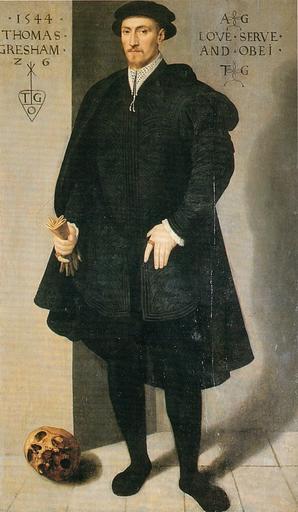 Keywords: suit Sir Thomas Gresham (c. 1519 – 21 November 1579) was an English merchant and financier who worked for King Edward VI of England and for Edward's half-sister Queen Elizabeth I of England. Born in London and descended from an old Norfolk family, Gresham was one of two sons and two daughters of Sir Richard Gresham, a leading London merchant, who for some time held the office of Lord Mayor, and who for his services as agent of Henry VIII in negotiating loans with foreign merchants received the honour of knighthood. Though his father intended him to follow his own profession, he nevertheless sent him for some time to Gonville and Caius College, Cambridge,[1] but no information survives as to the duration of his residence. Either before or after this he became apprentice to his uncle Sir John Gresham, also a merchant, who founded Gresham's School in Holt, Norfolk in 1555: we have his own testimony that he served an apprenticeship of eight years. In 1543 the Mercers Company admitted the 24-year-old Gresham as a liveryman, and in the same year he went to the Low Countries, where, either on his own account or on that of his father or uncle, he both carried on business as a merchant and acted in various matters as an agent for King Henry VIII. In 1544 he married Anne Fernley, the widow of William Read, a London merchant, but he still continued to reside principally in the Low Countries, having his headquarters at Antwerp in present-day Belgium, where he played the market skillfully. When in 1551 the mismanagement of Sir William Dansell, king's merchant in the Low Countries, had brought the English government into great financial embarrassment, the authorities called in Gresham to give his advice, and then chose him to carry out his own proposals. He called for the adoption of various methods — highly ingenious, but quite arbitrary and unfair — for raising the value of the pound sterling on the bourse of Antwerp, and this proved so successful that in a few years King Edward VI discharged almost all of his debts. The government sought Gresham's advice in all their money difficulties, and also frequently employed him in various diplomatic missions. He had no stated salary, but in reward of his services received from King Edward various grants of lands, the annual value of which at that time amounted ultimately to about 400 pounds a year. On the accession of Queen Mary in 1553 Gresham went out of favour for a short time, and Alderman William Dauntsey displaced him in his post. But Dauntsey's financial operations proved not very successful and Gresham was soon re-instated; and as he professed his zealous desire to serve the Queen, and manifested great adroitness both in negotiating loans and in smuggling money, arms and foreign goods, not only were his services retained throughout her reign (1553 - 1558), but besides his salary of twenty shillings per diem he received grants of church lands to the yearly value of 200 pounds. Under Queen Elizabeth (reigned 1558 - 1603), besides continuing in his post as financial agent of the crown, Gresham acted temporarily as ambassador at the court of the duchess of Parma, receiving a knighthood in 1559 prior to his departure. The unsettled times preceding the Dutch Revolt compelled him to leave Antwerp on 10 March 1567; but, though he spent the remainder of his life in London, he continued his business as merchant and financial agent of the government in much the same way as formerly. Overall he made himself one of the richest men in England. Queen Elizabeth also found Gresham useful in a great variety of other ways, including acting as jailer to Lady Mary Grey (sister of Lady Jane Grey), who, as a punishment for marrying Thomas Keys the sergeant porter, remained a prisoner in his house from June 1569 to the end of 1572. He served as her Royal Factor. In 1565 Gresham made a proposal to the court of aldermen of London to build at his own expense a bourse or exchange — what became the Royal Exchange, modelled on the Antwerp bourse — on condition that they purchased for this purpose a piece of suitable ground. In this proposal he seems to have had an eye to his own interest as well as to the general good of the merchants, for by a yearly rental of 700 obtained for the shops in the upper part of the building he received a sufficient return for his trouble and expense. The foundation of the Royal Exchange is the background of Thomas Heywood's play: If You Know Not Me, You Know Nobody part 2, in which a Lord extols the quality of the building when asked if he has ever seen "a goodlier frame": "Not in my life; yet I have been in Venice, In the Rialto there, called Saint Mark's; 'Tis but a bauble, if compared to this. The nearest, that which most resembles this, Is the great Burse in Antwerp, yet no comparable Either in height or wildeness, the fair cellarage, Or goodly shops above. Oh my Lord Mayor, This Gresham hath much graced your city, London; His fame will long outlive him. Gresham died suddenly, apparently of apoplexy, on 21 November 1579. His only son predeceased him, and his illegitimate daughter Anne, whom he married to Sir Nathaniel Bacon (1546?–1622), local politician, half-brother of Francis Bacon,1st Viscount St Alban. Sir Thomas Gresham (c. 1519 – 21 November 1579) was an English merchant and financier who worked for King Edward VI of England and for Edward's half-sister Queen Elizabeth I of England. Born in London and descended from an old Norfolk family, Gresham was one of two sons and two daughters of Sir Richard Gresham, a leading London merchant, who for some time held the office of Lord Mayor, and who for his services as agent of Henry VIII in negotiating loans with foreign merchants received the honour of knighthood. Though his father intended him to follow his own profession, he nevertheless sent him for some time to Gonville and Caius College, Cambridge,[1] but no information survives as to the duration of his residence. E