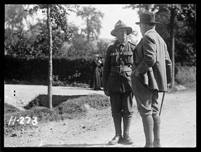 | Keywords: blackandwhite monochrome photo border outdoor black and white Sir Thomas Mackenzie, New Zealand High Commissioner in London, talking with a New Zealand soldier during MacKenzie's visit to troops in France during World War I. Photograph taken between 9 and 10 September 1917 by Henry Armytage Sanders. Inscriptions: Inscribed - Photographer's title on negative -bottom left: H273. Quantity: 1 b&w original negative(s). Physical Description: Dry plate glass negative 3.25 x 4.25 inches Sir Thomas MacKenzie talking with a New Zealand soldier in France, World War I. Royal New Zealand Returned and Services' Association :New Zealand official negatives, World War 1914-1918. Ref: 1/4-009507-G. Alexander Turnbull Library, Wellington, New Zealand. natlib.govt.nz/records/22775924 Sir Thomas Mackenzie, New Zealand High Commissioner in London, talking with a New Zealand soldier during MacKenzie's visit to troops in France during World War I. Photograph taken between 9 and 10 September 1917 by Henry Armytage Sanders. Inscriptions: Inscribed - Photographer's title on negative -bottom left: H273. Quantity: 1 b&w original negative(s). Physical Description: Dry plate glass negative 3.25 x 4.25 inches Sir Thomas MacKenzie talking with a New Zealand soldier in France, World War I. Royal New Zealand Returned and Services' Association :New Zealand official negatives, World War 1914-1918. Ref: 1/4-009507-G. Alexander Turnbull Library, Wellington, New Zealand. natlib.govt.nz/records/22775924 |
