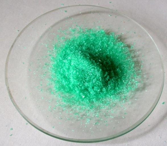 Keywords: Síran nikelnatý.JPG NiSO<sub>4</sub> Own 2007-10-11 Ondřej Mangl Nickel II sulfate Samples of inorganic compounds