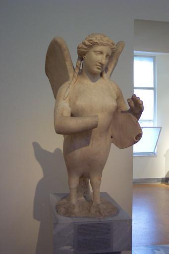 | Keywords: Siren statue - Athens.jpg Funerary statue of a siren in Pentelic marble found in the Necropolis of Ceramics at Athens The siren laments the dead wings folded playing on a tortoiseshell lyre The right hand which would have held the plectrum is missing The strings probably made of bronze would have been attached to the holes which can be seen in the body of the instrument The plumage and other parts would have been picked out in colour The statue flanked the stele of the Athenian warrior Dexileo who fell in combat in 394/393 BC Work of 370BC National Archeological Museum Athens Statue funéraire d'une sirène en marbre pentélique trouvée dans la nécropole du Céramique à Athènes La Sirène les ailes dressées lamente le défunt en jouant d'une lyre faite d'une carapace de tortue La main droite qui devait tenir le plectrum manque Les trous dans la caisse de l'instrument indiquent l'existence de cordes probablement en bronze Le plumage et d'autres parties du corps étaient rehaussés de couleur La Sirène flanquait la stèle du cavalier athénien Dexileo qui tomba au combat en 394/393 a C Œuvre de 370 a C Musée archéologique national Athènes own 10-2-07 Dagrappler Dagrappler <gallery> File Siren statue - Athens jpg File Sirenenstatue jpg File NAMA Sirène jpg </gallery> original upload log wikitable date/time username resolution size edit summary ---- 04 48 5 December 2007 User Dagrappler <a href http //upload wikimedia org/wikipedia/commons/6/65/100_2627 JPG ><img alt Thumbnail for version as of 04 48 5 December 2007 src http //upload wikimedia org/wikipedia/commons/thumb/6/65/100_2627 JPG/80px-100_2627 JPG width 80 height 120 border 0 /></a></td><td>1 440×2 160 409 KB <nowiki> Siren statue at Athens Archelogical Museum self-made 10-2-07 <a href /w/index php title User Dagrappler action edit redlink 1 class new title User Dagrappler page does not exist >Dagrappler</a> </nowiki> Statue of a Siren NAMA 774 |