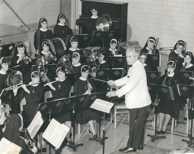 The Sisters of St. Joseph Concert Band began as part of the Centennial Program for the London based Sisters, which lasted from December 1968 until December 1969. However, the Concert Band lasted well beyond the Centennial year, and was quite successful, playing at ecumenical concerts, music festivals, and performance venues from Quebec City to Edmonton and many places in between. From March 1968 to June 1970, the Sisters of St. Joseph Concert Band performed in 15 cities, at 35 public concerts, traveled 8,000 miles and performed for over 23,000 people. Its conductor was the well-known and respected Mr. Martin Boundy, until 1971 when Mr. Donald H. Jones became the Band's conductor.