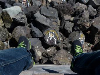 Keywords: sit feet dangle dangling feet shoes stones painted art painter idea shore stones stars musician santa cruz tenerife man person famous hoffmann