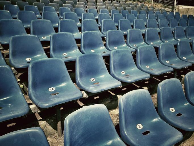 Keywords: sit grandstand theater football stadium audience viewers watch sport tribune bucket seats club background blue chairs play clubs games