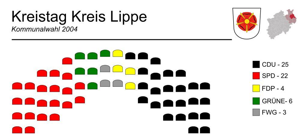 Keywords: Sitzverteilung Kreistag Kreis Lippe 2004.svg Sitzverteilung im Kreistag Lippe Wahlperiode 2004 own based partly on Kreiswappen des Kreises Lippe svg uploaded by Ludger1961 North rhine w HF svg by TUBS design based on de Benutzer DLiebisch/sitzverteilungen and Sitzverteilungsfigur svg by DLiebisch 2009 TUBS TUBS GFDL cc-by-3 0 2 5 2 0 1 0 cc-by-sa-3 0 2 5 2 0 1 0 TUBS/Credits Election apportionment diagrams of North Rhine-Westphalia Lippe Kreistag 2004 Statistics of Kreis Lippe Kreistag 2004 Local elections in North Rhine-Westphalia 2004 Lippe Kreistag |