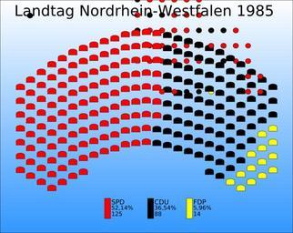 | Keywords: Sitzverteilung Landtag Nordrhein-Westfalen 1985.svg Der nordrhein-westfälische Landtag nach der Landtagswahl in Nordrhein-Westfalen 1985 Seats in parliament of North Rhine-Westphalia after 1985 state elections in North Rhine-Westphalia Germany own based on File Niedersächsischer_Landtag_2008 svg by DLiebisch 2010-05-16 TUBS self TUBS TUBS/licensesection Attribution TUBS/Credits Election apportionment diagrams of Landtag of North Rhine-Westphalia 1985 state elections in North Rhine-Westphalia |