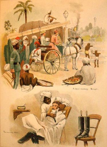 | Keywords: Sketches4.jpg en Lloyd's Sketches of Indian Life London 1890 chromolithographs enhanced with gum arabic Arrival in Bombay native women-- visions of Lalla Rookh waking in the morning street scene Central India revenge for noise donkey-riders soldiers croquet dust-sprinkling at the club The Alligator's Dinner Hour Camping Himalayas families hunting porters various sketches 1 various sketches 2 various sketches 3 various sketches 4 Source ebay Aug 2005 1890 http //www columbia edu/itc/mealac/pritchett/00routesdata/1800_1899/dailylife_drawings/lloyd1890/lloyd1890 html Lloyd's Sketches PD-Art Uploaded with UploadWizard W Lloyd 'Lloyd's Sketches of Indian Life' London Chapman Hall 1890 |