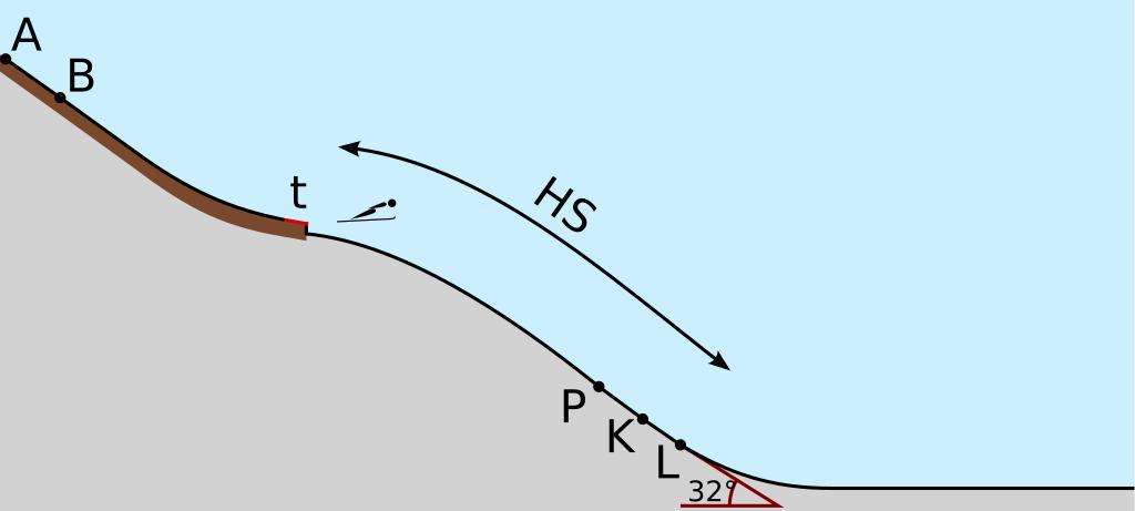 | Keywords: Ski jumping hill profile.svg fr <br /> A point supérieur du départ<br /> B point inférieur du départ<br /> t table<br /> P début de la zone d ™atterrissage<br /> K point de construction<br /> L fin de la zone d ™atterrissage<br /> HS taille du tremplin hill size 2013-03-23 17 55 58 own Florn88 cc-zero Uploaded with UploadWizard Ski jumping hills |