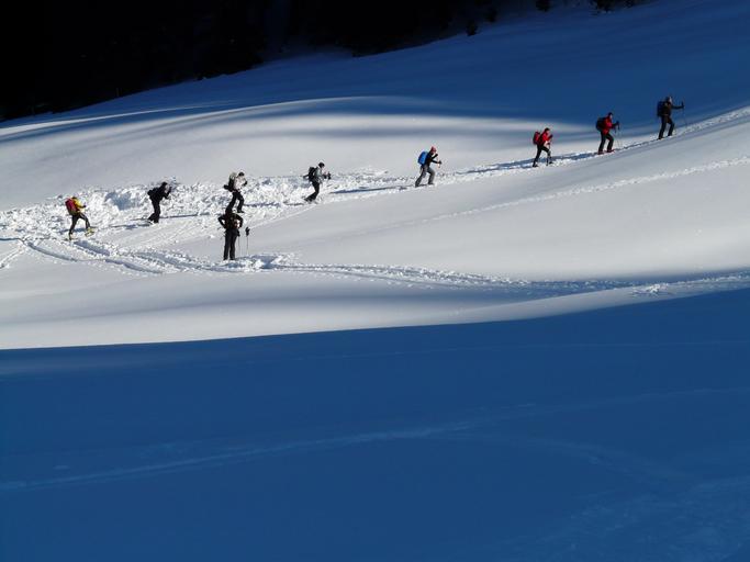 Keywords: ski tour winter hike hike winter cold run rise mountains skiing zig zag tourers endurance sports wintry group human people sport leisure