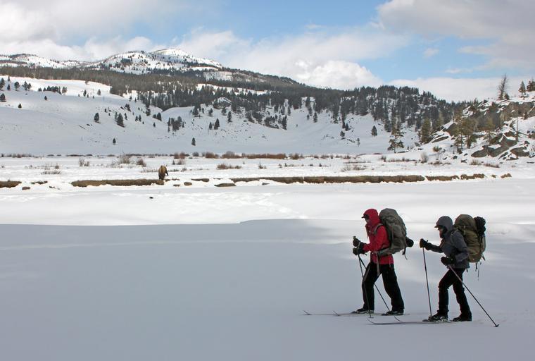 | Keywords: yellowstone yellowstone national park yellowstonenationalpark national park nationalpark sport snow outdoor Skiers on Slough Creek Trail with bison grazing near Creek; Diane Renkin; February 2015; Catalog #19870d; Original #IMG_7694 Skiers on Slough Creek Trail with bison grazing near Creek; Diane Renkin; February 2015; Catalog #19870d; Original #IMG_7694 |