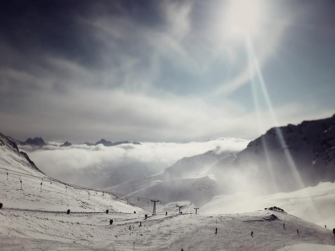 Keywords: skiing slope mountains winter snow ski sports white alps vacation holiday sun cold outdoor sky mountainside snowboarding slopes hills chair lift runs clouds