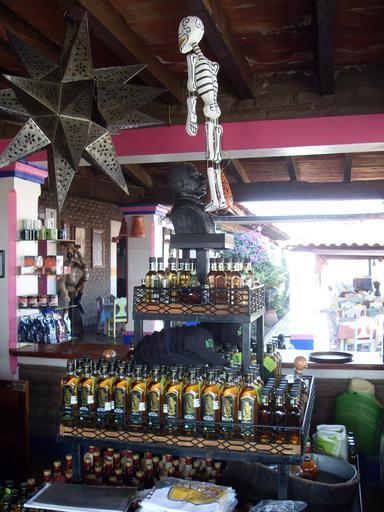 Keywords: Sklep z tequilą w Meksyku.JPG pl Wnętrze sklepu z tequilą w Meksyku Ozdoby w stylu Katrina z okazji Wszystkich Swiętych Own Wicki 2009-04-05 Mexico Mezcal
