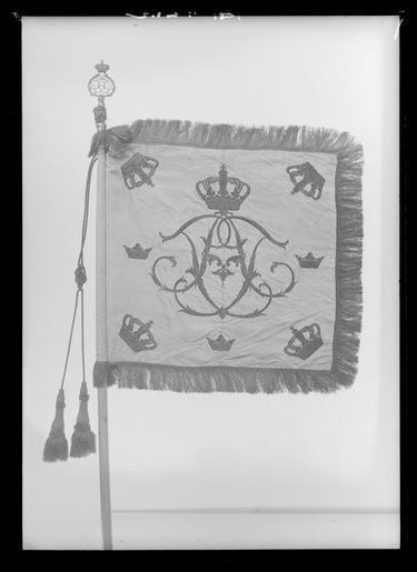 | Keywords: Skvadronstandar Borgerskapets kavalleri - Livrustkammaren - 35654.tif Duk av dubbel röd sidendamast mycket blekt med mönster bestående av ett yvigt lövverk Mönsterrapport på damasten b 235 mm x h 420 mm Dekor broderat på utsidan Adolf Fredriks namnchiffer spegelmonogram A F under sluten kunglig krona nedtill omgiven av två lagerkvistar hopknutna med rosett alltihop i läggsömsbroderi i silver Namnchiffret i kronans höjd 470 mm av fyra rosor i applicerad blå taft med påsydda motiv i blått och silver Frans enkel av metall Duken fäst med tre rader tennlickor på band Stång av trä kannelerad vitmålad och förgylld järnbeslagen Löpande bärring Holk av förgylld mässing Avsågad original caption 1763 iron - silver - gold - metal - wood Färg vit material trä size mm 10 band size mm 350 grepp size mm 710 size mm 670 size mm 60 frans size mm 3150 stång total size mm 80 holk LRK place of origin original filename LN_B11224_014104 53620 inventory number LRK 17079 35654 CC0 Skvadronstandar Borgerskapets kavalleri - Livrustkammaren - 35654-negative tif <gallery caption Different images of same object > File Skvadronstandar Borgerskapets kavalleri - Livrustkammaren - 43207 tif File Skvadronstandar Borgerskapets kavalleri - Livrustkammaren - 68893 tif </gallery> Heraldic flags Media contributed by LSH unmatched material Media contributed by LSH dim-with multiple size templates Media contributed by LSH 2013-10 |