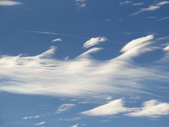 Keywords: sky clouds blue cloud contrail clear sunny beautiful warm cirrus federwolke sawtooth saw tooth pattern pattern