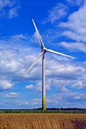 Keywords: sky clouds pinwheel wind power wind energy landscape nature blue energy