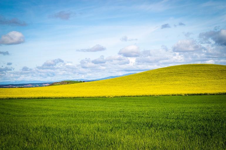 Keywords: sky field blue sky clouds landscape cultivation agriculture spring