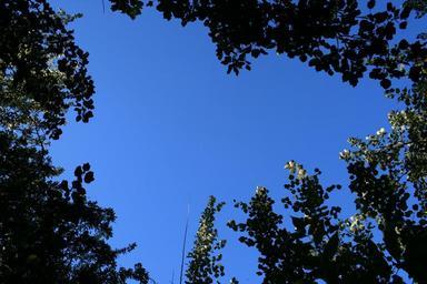 Keywords: sky trees tree tops foliage poplars leaves forest