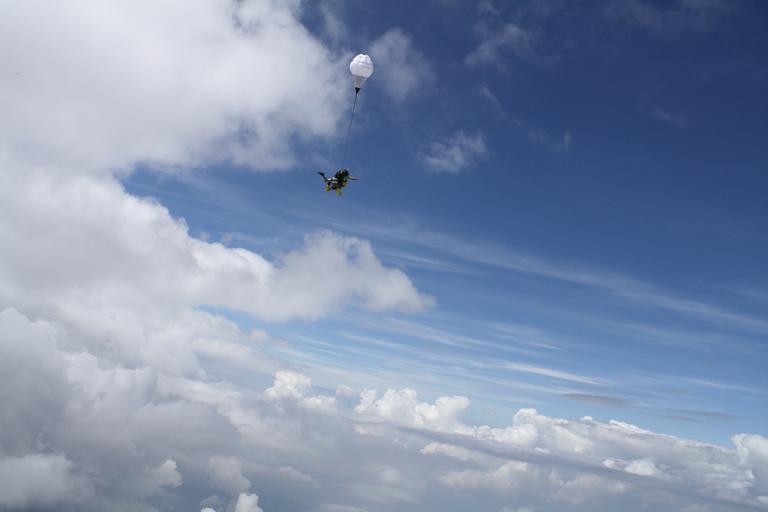 Keywords: diving sky sport extreme parachuting parachute jumping up men parachutist people person background speed all helmet blue fly fun sign adult right male flyer ok portrait young stylish skills skydiving freedom