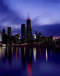Keywords: skyline chicago dusk downtown sears tower willis tower water reflection cityscape illinois usa buildings architecture sky highrise urban twilight skyscraper towers scenic night illuminated