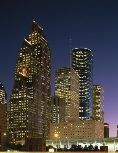 Keywords: skyline houston dusk downtown cityscape texas usa buildings architecture sky highrise urban twilight skyscraper towers scenic night