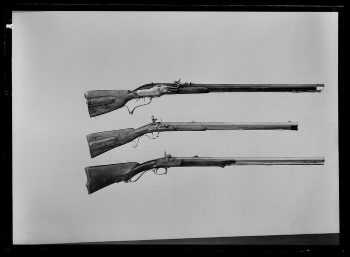 | Keywords: Slaglåsstudsare, Johannes Hult i Gravås, Värmland 1852 - Livrustkammaren - 35103.tif Åttsidig räfflad pipa 8 räfflor förlängd med svansskruv l 71 mm Snidad dekor på översidan bladknippe på h sida ihoprullad drake i vars gap en tändhattstapp av blånerat stål är skruvad nedre delen av skruven är avbruten och borta Vidövergången till pipan inslaget en linje av guld Därframför på de tre övre faserna ett fält med kantlinjer av inslaget silver framtill dessutom guldbågar I fältet signatur till v graverat frakturstil Förferdigad af i mitten med inslaget guld J HULT till h graverat frakturstil Grafås Under kammaren stämplat 1852 Vid mynningen inslaget en linje av guld och en av silver Under pipan en spång l 451 mm med två rörformiga rörkor framför överrörkan en fjädrande spärr för laddstocken <br/>Riktmedel Sikte av blånerat stål justerbart i höjdled genom en skjutbar visare på en graderad tavla visaraxeln försedd med kugghjul som via drev överför rörelsen till siktet Justerbart också i sidled siktskåran är placerad på en rulle som går att skruva åt sidan Spolformigt korn av silver omgivet av en bård av inslaget guld <br/><br/>Slaglås med plant låsbleck överkanten framför fängpannans urtag rundad Graverad dekor i form avett rovdjur tiger med svans som fortsätter upp på fängpannan och är lindad runt fängpannans drake Plan hane med graverad rankdekor På hanhuvudet ligger ett plastiskt utformat pälsdjur svansen utgör tumgrepp Hanaxelns täckskruv saknas Slagfjäder och nöt blånerade <br/>Säkring Bakom hanen en skjutsäkring fingergrepp i form av ett djurkranium <br/>C-formig avtryckare med rundad framsida Långt avtryckarbleck framtill konturerat och graverat meden tropisk fågel <br/><br/>Mörkt brunbetsad halvstock av trä Kolvhalsen bakre del på undersidan skuren i form av ett hjorthuvud Beslag av stål med graverad dekor Bakplåt i form av en krokodil med svansen på kolvryggen Om framtänderna trycks in öppnas gapet Därinnanför finns ett runt hål d ca 9 mm ev för skruvnyckel På kolvhalsen beslag i form av en palm Spetsrörka i form av en stövare med en fågel i munnen Sidbleck i form av en drake Kraftigt svängd varbygel med lång bakre arm på den platta bygeln graverat ett lejon rembygel vid det bakre fästet framför den främre stolpen ett löstagbart stöd Inga utifrån synliga skruvar I pipnoten fastskruvat ett regelhus av mässing med två skjutreglar <br/><br/>Tillbehör <br/>Laddstock av stockens trä l 783 mm i ena änden ett mässingsbeslag l 107 mm med inskruvat huvud två graverade ringar samt bokstäverna A och B I andra änden likaså ett mässingsbeslag l 129 mm två avtagbara hylsor den främre åttsidig l 36 mm den bakre rund l 60 mm vänstergängad Vid övergången mellan det runda och det fasta beslaget graverad dekor 180 mm från spetsen islaget ett mässingsstift därovanför inslaget bokstaven A Ca 11 mm därnedanför ytterligare ett stift och bokstaven B Innanför den åttsidiga hylsan en plunderskruv och innanför den runda hylsan två fjädrar på den ena en klack <br/><br/>Isärtagning <br/>För isärtagning av bössan trycks avtryckaren framåt varvid stödet framför varbygeln lossnar Därunder finns en skruv med städformigt huvud som låser både låsbleck och pipa via utskott med gängade hål möjligen har en nyckel till skruven funnits innanför bakplåtens lucka Därefter dras laddstocken ut skyddshylsorna skruvas av den yttre hylsan skruvas på igen varefter laddstocken skjuts in i laddstocksnoten med den fjädrande klacken in mot pipan Laddstocken förs in till dess bokstaven B är vid mynningen klacken hakar då i den första regeln som skjuts ur klacken på pipan Den andra skjutregelns ten är avsedd att gå igenom hål i pipskruven men denna saknar nu hål varför denna regel saknar funktion Laddstocken dras sedan ur noten pipskruven skruvas ur åt vänster varefter pipan kan lyftas ur noten Pipan hålls förutom av regeln på plats med en klack på svansskruvbladets undersida som går ner i urtag i stålbeslaget på kolvryggen original caption 1852 wood e3 - eldvapen - stock material trä - steel e1247 - eldvapen - pipa lås riktmedel och beslag material stål - silver e8 - eldvapen - stockdekor material silver - brass e7 - eldvapen - stockbeslag material mässing - gold e8 - eldvapen - stockdekor material guld size mm 203 g 4520 size mm 795 pipa size mm 1225 LRK Basutställning Nordiska vapenformer Made in Sweden 2003 Förfärdigad af I Hult i Grafås anv e1 - eldvapen - pipa; Johannes Hult Förfärdigad af I Hult i Grafås anv e1 - eldvapen - pipa; Johannes Hult place of origin original filename LN_B05714_008594 39953 inventory number LRK 3376 35103 CC0 Slaglåsstudsare Johannes Hult i Gravås Värmland 1852 - Livrustkammaren - 35103-negative tif Percussion muskets images from Livrustkammaren Flintlock muskets images from Livrustkammaren Wheellock musket images from Livrustkammaren Media contributed by LSH dim-with multiple size templates Media contributed by LSH unmatched creator Media contributed by LSH 2013-10 |