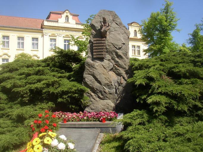 | Keywords: Slany CZ memorial of Nazi victims 124.jpg Pomník obětem nacistické okupace 1939-1945 na Hlaváčkově náměstí ve Slaném okres Kladno Memorial to victims of Nazi occupation 1939-45 in Hlaváček Square in town of Slaný Kladno District Czech Republic 50 13 59 1 N 14 05 12 1 E type landmark_region CZ <br> <center> 0 style text-align center; background b2beb5; color black cellpadding 5 cellspacing 0 - 3 style background aa98a9 - background aa98a9 background bc987e OSVĚTIM background aa98a9 - background aa98a9 background bc987e DACHAU background aa98a9 - background aa98a9 background bc987e BUCHENWALD background aa98a9 - background aa98a9 background bc987e MAUTHAUSEN background aa98a9 - background aa98a9 background bc987e RAWENSBR CK background aa98a9 - background aa98a9 background bc987e TEREZÍN background aa98a9 - background aa98a9 background bc987e PANKRÁC background aa98a9 - 3 style background aa98a9 - 3 style background aa98a9 - 3 style background aa98a9 - 3 style background aa98a9 - 3 NA VĚČNOU PAMĚŤ POPRAVEN M A UMUČEN M 1939 1945 - ANDRÁŠEK VÁCLAV HYBŠ RUDOLF NEUMANOVÁ JULIE - BECKOVÁ KAROLINA HYBŠOVÁ ALBÍNA NEUMANOVÁ MILOSLAVA - BENEŠOVÁ ANNA HYBŠ EDUARD OPLT STANISLAV - BENEŠ ARTUR HYBŠ PAVEL PENÍŽEK FERDINAND - BENEŠ JOSEF CHADALÍK EMIL POKORN ALOIS - BENEŠ JOSEF KAPALÍN KAREL JUDR POPPER EGON - MUDR BENEŠ KAREL KERNER KAREL POPPER HUGO - BENEŠ MOŘIC KLÁN OTTA POPPEROVÁ ELSA - JUDR BENEŠ OTA KLAUS JOSEF PRESSER EGON - BENEŠ VLADIMÍR KOLÁŘ FRANTIŠEK PRESSER FRANTIŠEK - BUREŠ VÁCLAV KORCOVÁ BERTA PRESSER OTA - ČERVENKA VÁCLAV KOREC KAREL PRESSEROVÁ ROSÁLIE - ČÍŽEK JOSEF KORCOVÁ MARTA JUDR PUGNAR JAN - DUFEK SYLVESTR 2 DĚTI KORCOV CH PUGNAROVÁ ELIŠKA - ECKSTEIN JOSEF KRAUS RAINHOLD RŮŽIČKA JAROSLAV - ECKSTEINOVÁ ELSA KOTMEL JOSEF SAINER KAREL - ELZNIC JIŘÍ KUBÍČEK VÁCLAV SMETANA OLDŘICH - ELZNIC JOSEF LÍSKOVEC MILOSLAV SUŠÁNEK JOSEF - EPSTEINOVÁ LUISA LEKNER EMIL SVÍTEK ZDENĚK - FANTA RICHARD LEKNEROVÁ AMÍLIE SVOBODA JOSEF - FANTOVÁ HANA LÖWY ARNOŠT SVOBODOVÁ ALOISIE - FELDMAN OSKAR LÖWY OTTA SVOBODOVÁ IRENA - FIŠER JOSEF LÖWYOVÁ ANNA ŠEBESTA VÁCLAV - FLEISCHNEROVÁ JOSEFA 2 DĚTI LÖWYOV CH ŠMÍDL VÁCLAV - MUC FORMÁNEK JAN LÖWYOVÁ ARNOŠTKA ŠTROBL ALOIS - FORMÁNEK KAREL MACEK BOHUSLAV TUŠER FRANTIŠEK - FREUNDOVÁ-FANTOVÁ VĚRA MALEC ANTONÍN URIE JOSEF - JUDR HAKEN MIROSLAV MAŘÍK JOSEF VACEK JAROSLAV - HAMPEJS VÁCLAV JUC MAŠEK BOHUMIL VIDIMSK FERDINAND - HARMÁČEK JOSEF MICHÁLEK BOHUMIL WEISSOVÁ ANNA - HLINOVSK LADISLAV MÍŠEK VÁCLAV WINTERNITZ JOSEF - HOLEČEK JOSEF NÁHLOVSK VÁCLAV WINTERNITZ LUDVÍK - HOL ŠTĚPÁN NEUMAN VIKTOR WINTERNITZOVÁ ANNA - HRUB BORIS ING NEUMAN VLADIMÍR ŽÍDEK VILÉM - NEUMANOVÁ JIŘINA - 3 SVAZ PROTIFAŠISTICK CH BOJOVNÍKů SLAN 1965 </center> <br> Monuments and memorials in Slaný World War II memorials in Kladno District Hlaváčkovo náměstí Slaný |