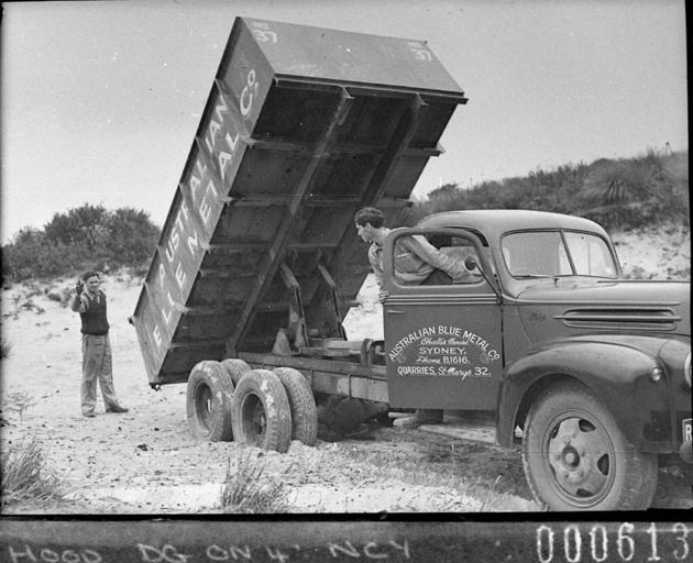 | Keywords: SLNSW 13080 Truck tipping its load Australian Blue Metal Co trucks for Mr Freeman Ford News.jpg en Truck tipping its load; Australian Blue Metal Co trucks for Mr Freeman Ford News 1944 http //www acmssearch sl nsw gov au/search/itemDetailPaged cgi itemID 13080 item <br/>http //www acmssearch sl nsw gov au/search/itemDetailPaged cgi itemID 37473 album <br/>http //www acmssearch sl nsw gov au/search/itemDetailPaged cgi itemID 395018 collection Creator Sam Hood This image may be used freely without requesting permission The State Library of New South Wales http //www acmssearch sl nsw gov au/search/itemPopLarger cgi itemID 13080 requests acknowledgement that the image is from the collections of the State Library of NSW User 99of9/SLNSW_extra_metadata_template 13080 Truck tipping its load; Australian Blue Metal Co trucks for Mr Freeman Ford News Home and Away - 10718 1944 Photographs 32812 images copied from glass and cellulose nitrate photonegatives The Library first purchased a large collection of negatives from Gladys Hood in 1972 This collection which included nitrate negatives which have subsequently been copied at DG 0N4 NCY 28-61 was transferred to a videodisc in 1991 and each image indexed individually Ted Hood assisted with the indexing; images were also identified using surviving studio registers The videodisc known as the Home Away disc or simply the Hood collection was digitised in 1996 and mounted on the Internet with upgraded index records via the online catalogue in December 1998 Purchased from Gladys Hood 1972 Copyright restrictions may apply - Photographs in this collection created before 1955 are all out of copyright Photographs created after 1955 are in copyright for the life of creator plus 70 years ; Please acknowledge - Mitchell Library State Library of New South Wales and Courtesy copyright holder 395018 Sam Hood photographic collection 1916-ca 1955 Approximately 44 800 negatives ; 7 309 photographic prints ; 3 boxes of textual material ; 6 film reels The Library first purchased a large collection of negatives from Gladys Hood in 1972 This collection which included nitrate negatives which have subsequently been copied at DG 0N4 NCY 28-61 was transferred to a videodisc in 1991 and each image indexed individually Ted Hood assisted with the indexing; images were also identified using surviving studio registers The videodisc known as the Home Away disc or simply the Hood collection was digitised in 1996 and mounted on the Internet with upgraded index records via the online catalogue in December 1998 ; Another collection from Sam Hood's studio was purchased in 1993 from Gladys Hood's descendants This comprised 7300 photoprints PXE 789 and ca 12000 negatives ON 204 Digitisation of important photographs in PXE 789 began Mar 2002 but ON 204 has not been digitised and must be viewed at the Library Samuel J Hood's 1872-1953 claimed to have been born 1870 but the South Australian Birth Index gives date as 20 August 1872 His career as a photographer began in the 1880s ; He ran a successful business in ships portraits these negatives are now held by the Australian National Maritime Museum Sydney and portraits of people in the late nineteenth - early twentieth century The State Library has little representation of this period In 1918 he acquired the Dalny Studio at 124 Pitt Street and began to expand his business into press photography providing photographs for the Sydney Mail the Australasian the Daily Guardian the Daily Telegraph Pictorial the Labor Daily the Sun the Daily News and the Sydney Morning Herald Press photography increasingly came to dominate his business and in 1934 he joined the Labor Daily for a short time as a full-time photographer engaging other staff to look after his studio ; By the mid-1930s most newspapers employed their own photographers and Hood's commissions from the papers began to decline Hood sought other kinds of commissions and won a number of long term advertising and commercial contracts He contributed a number of photographs of Sydney buildings and streets to Building Construction and Australasian Engineer during the late 1930s and early 1940s Hood also had extensive contacts in the entertainment industry who called upon him to document celebrity events and stars as well as theatre advertising Throughout his career he worked at the stock-in-trade for commercial photographers portraits weddings and even funerals ; A number of photographers worked for Dalny Studio some of these include Ernie Bowen Gus Daley Jack Lazern Lethington Maitland as well as Sam's own children Gladys and Ted ; For detailed biographical information about photographer Sam Hood see Sydney exposures through the eyes of Sam Hood his Studio 1925-1950 / Alan Davies Sydney State Library of New South Wales 1991 Out of copyright - Created before 1955 Photographs ; Please acknowledge - Mitchell Library State Library of New South Wales advertising photography; commercial photography; photojournalism 395018 Original item no NCY31/613 yes no PD-Australia PD-1996 Australia Images from the State Library of NSW album 37473 SLNSW media uploaded by User 99of9 Photographs by Sam Hood Trucks in Australia |