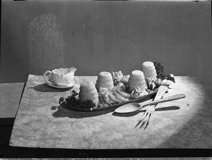 | Keywords: SLNSW 14046 Blancmange cups taken for Smiths Weekly cookery page.jpg en Blanc-mange cups taken for Smith's Weekly cookery page 24/3/1947 http //www acmssearch sl nsw gov au/search/itemDetailPaged cgi itemID 14046 item <br/>http //www acmssearch sl nsw gov au/search/itemDetailPaged cgi itemID 37473 album <br/>http //www acmssearch sl nsw gov au/search/itemDetailPaged cgi itemID 395018 collection Creator Sam Hood This image may be used freely without requesting permission The State Library of New South Wales http //www acmssearch sl nsw gov au/search/itemPopLarger cgi itemID 14046 requests acknowledgement that the image is from the collections of the State Library of NSW User 99of9/SLNSW_extra_metadata_template 14046 Blanc-mange cups taken for Smith's Weekly cookery page Home and Away - 11635 24/3/1947 Photographs 32812 images copied from glass and cellulose nitrate photonegatives The Library first purchased a large collection of negatives from Gladys Hood in 1972 This collection which included nitrate negatives which have subsequently been copied at DG 0N4 NCY 28-61 was transferred to a videodisc in 1991 and each image indexed individually Ted Hood assisted with the indexing; images were also identified using surviving studio registers The videodisc known as the Home Away disc or simply the Hood collection was digitised in 1996 and mounted on the Internet with upgraded index records via the online catalogue in December 1998 Purchased from Gladys Hood 1972 Copyright restrictions may apply - Photographs in this collection created before 1955 are all out of copyright Photographs created after 1955 are in copyright for the life of creator plus 70 years ; Please acknowledge - Mitchell Library State Library of New South Wales and Courtesy copyright holder 395018 Sam Hood photographic collection 1916-ca 1955 Approximately 44 800 negatives ; 7 309 photographic prints ; 3 boxes of textual material ; 6 film reels The Library first purchased a large collection of negatives from Gladys Hood in 1972 This collection which included nitrate negatives which have subsequently been copied at DG 0N4 NCY 28-61 was transferred to a videodisc in 1991 and each image indexed individually Ted Hood assisted with the indexing; images were also identified using surviving studio registers The videodisc known as the Home Away disc or simply the Hood collection was digitised in 1996 and mounted on the Internet with upgraded index records via the online catalogue in December 1998 ; Another collection from Sam Hood's studio was purchased in 1993 from Gladys Hood's descendants This comprised 7300 photoprints PXE 789 and ca 12000 negatives ON 204 Digitisation of important photographs in PXE 789 began Mar 2002 but ON 204 has not been digitised and must be viewed at the Library Samuel J Hood's 1872-1953 claimed to have been born 1870 but the South Australian Birth Index gives date as 20 August 1872 His career as a photographer began in the 1880s ; He ran a successful business in ships portraits these negatives are now held by the Australian National Maritime Museum Sydney and portraits of people in the late nineteenth - early twentieth century The State Library has little representation of this period In 1918 he acquired the Dalny Studio at 124 Pitt Street and began to expand his business into press photography providing photographs for the Sydney Mail the Australasian the Daily Guardian the Daily Telegraph Pictorial the Labor Daily the Sun the Daily News and the Sydney Morning Herald Press photography increasingly came to dominate his business and in 1934 he joined the Labor Daily for a short time as a full-time photographer engaging other staff to look after his studio ; By the mid-1930s most newspapers employed their own photographers and Hood's commissions from the papers began to decline Hood sought other kinds of commissions and won a number of long term advertising and commercial contracts He contributed a number of photographs of Sydney buildings and streets to Building Construction and Australasian Engineer during the late 1930s and early 1940s Hood also had extensive contacts in the entertainment industry who called upon him to document celebrity events and stars as well as theatre advertising Throughout his career he worked at the stock-in-trade for commercial photographers portraits weddings and even funerals ; A number of photographers worked for Dalny Studio some of these include Ernie Bowen Gus Daley Jack Lazern Lethington Maitland as well as Sam's own children Gladys and Ted ; For detailed biographical information about photographer Sam Hood see Sydney exposures through the eyes of Sam Hood his Studio 1925-1950 / Alan Davies Sydney State Library of New South Wales 1991 Out of copyright - Created before 1955 Photographs ; Please acknowledge - Mitchell Library State Library of New South Wales advertising photography; commercial photography; photojournalism 395018 Original item no NCY33/25 yes no PD-Australia PD-1996 Australia Images from the State Library of NSW album 37473 SLNSW media uploaded by User 99of9 Food of Australia Photographs by Sam Hood |