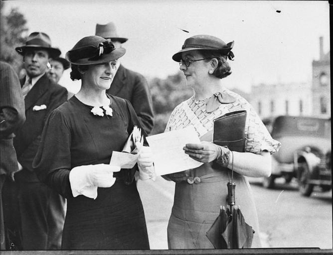 Keywords: SLNSW 14182 Justices of the Peace sworn in Two women holding papers outside Court of Quarter Sessions.jpg en Justices of the Peace sworn in Two women holding papers outside Court of Quarter Sessions 16/2/1935 http //www acmssearch sl nsw gov au/search/itemDetailPaged cgi itemID 14182 item <br/>http //www acmssearch sl nsw gov au/search/itemDetailPaged cgi itemID 37473 album <br/>http //www acmssearch sl nsw gov au/search/itemDetailPaged cgi itemID 395018 collection Creator Sam Hood This image may be used freely without requesting permission The State Library of New South Wales http //www acmssearch sl nsw gov au/search/itemPopLarger cgi itemID 14182 requests acknowledgement that the image is from the collections of the State Library of NSW User 99of9/SLNSW_extra_metadata_template 14182 Justices of the Peace sworn in Two women holding papers outside Court of Quarter Sessions Home and Away - 11848 16/2/1935 Photographs 32812 images copied from glass and cellulose nitrate photonegatives The Library first purchased a large collection of negatives from Gladys Hood in 1972 This collection which included nitrate negatives which have subsequently been copied at DG 0N4 NCY 28-61 was transferred to a videodisc in 1991 and each image indexed individually Ted Hood assisted with the indexing; images were also identified using surviving studio registers The videodisc known as the Home Away disc or simply the Hood collection was digitised in 1996 and mounted on the Internet with upgraded index records via the online catalogue in December 1998 Purchased from Gladys Hood 1972 Copyright restrictions may apply - Photographs in this collection created before 1955 are all out of copyright Photographs created after 1955 are in copyright for the life of creator plus 70 years ; Please acknowledge - Mitchell Library State Library of New South Wales and Courtesy copyright holder 395018 Sam Hood photographic collection 1916-ca 1955 Approximately 44 800 negatives ; 7 309 photographic prints ; 3 boxes of textual material ; 6 film reels The Library first purchased a large collection of negatives from Gladys Hood in 1972 This collection which included nitrate negatives which have subsequently been copied at DG 0N4 NCY 28-61 was transferred to a videodisc in 1991 and each image indexed individually Ted Hood assisted with the indexing; images were also identified using surviving studio registers The videodisc known as the Home Away disc or simply the Hood collection was digitised in 1996 and mounted on the Internet with upgraded index records via the online catalogue in December 1998 ; Another collection from Sam Hood's studio was purchased in 1993 from Gladys Hood's descendants This comprised 7300 photoprints PXE 789 and ca 12000 negatives ON 204 Digitisation of important photographs in PXE 789 began Mar 2002 but ON 204 has not been digitised and must be viewed at the Library Samuel J Hood's 1872-1953 claimed to have been born 1870 but the South Australian Birth Index gives date as 20 August 1872 His career as a photographer began in the 1880s ; He ran a successful business in ships portraits these negatives are now held by the Australian National Maritime Museum Sydney and portraits of people in the late nineteenth - early twentieth century The State Library has little representation of this period In 1918 he acquired the Dalny Studio at 124 Pitt Street and began to expand his business into press photography providing photographs for the Sydney Mail the Australasian the Daily Guardian the Daily Telegraph Pictorial the Labor Daily the Sun the Daily News and the Sydney Morning Herald Press photography increasingly came to dominate his business and in 1934 he joined the Labor Daily for a short time as a full-time photographer engaging other staff to look after his studio ; By the mid-1930s most newspapers employed their own photographers and Hood's commissions from the papers began to decline Hood sought other kinds of commissions and won a number of long term advertising and commercial contracts He contributed a number of photographs of Sydney buildings and streets to Building Construction and Australasian Engineer during the late 1930s and early 1940s Hood also had extensive contacts in the entertainment industry who called upon him to document celebrity events and stars as well as theatre advertising Throughout his career he worked at the stock-in-trade for commercial photographers portraits weddings and even funerals ; A number of photographers worked for Dalny Studio some of these include Ernie Bowen Gus Daley Jack Lazern Lethington Maitland as well as Sam's own children Gladys and Ted ; For detailed biographical information about photographer Sam Hood see Sydney exposures through the eyes of Sam Hood his Studio 1925-1950 / Alan Davies Sydney State Library of New South Wales 1991 Out of copyright - Created before 1955 Photographs ; Please acknowledge - Mitchell Library State Library of New South Wales advertising photography; commercial photography; photojournalism 395018 Original item no NCY33/238 yes no PD-Australia PD-1996 Australia Images from the State Library of NSW album 37473 SLNSW media uploaded by User 99of9 Photographs by Sam Hood Fashion in 1935 Women with hats |
