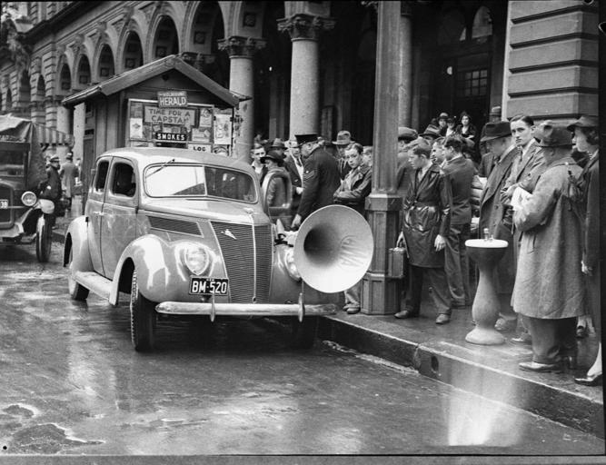 | Keywords: SLNSW 21066 Car with loudspeaker AWA equipment.jpg en Car with loudspeaker AWA equipment 11/1937 http //www acmssearch sl nsw gov au/search/itemDetailPaged cgi itemID 21066 item <br/>http //www acmssearch sl nsw gov au/search/itemDetailPaged cgi itemID 37473 album <br/>http //www acmssearch sl nsw gov au/search/itemDetailPaged cgi itemID 395018 collection Creator Sam Hood This image may be used freely without requesting permission The State Library of New South Wales http //www acmssearch sl nsw gov au/search/itemPopLarger cgi itemID 21066 requests acknowledgement that the image is from the collections of the State Library of NSW Photographs 32812 images copied from glass and cellulose nitrate photonegatives The Library first purchased a large collection of negatives from Gladys Hood in 1972 This collection which included nitrate negatives which have subsequently been copied at DG 0N4 NCY 28-61 was transferred to a videodisc in 1991 and each image indexed individually Ted Hood assisted with the indexing; images were also identified using surviving studio registers The videodisc known as the Home Away disc or simply the Hood collection was digitised in 1996 and mounted on the Internet with upgraded index records via the online catalogue in December 1998 Purchased from Gladys Hood 1972 Copyright restrictions may apply - Photographs in this collection created before 1955 are all out of copyright Photographs created after 1955 are in copyright for the life of creator plus 70 years ; Please acknowledge - Mitchell Library State Library of New South Wales and Courtesy copyright holder 395018 Sam Hood photographic collection 1916-ca 1955 Approximately 44 800 negatives ; 7 309 photographic prints ; 3 boxes of textual material ; 6 film reels The Library first purchased a large collection of negatives from Gladys Hood in 1972 This collection which included nitrate negatives which have subsequently been copied at DG 0N4 NCY 28-61 was transferred to a videodisc in 1991 and each image indexed individually Ted Hood assisted with the indexing; images were also identified using surviving studio registers The videodisc known as the Home Away disc or simply the Hood collection was digitised in 1996 and mounted on the Internet with upgraded index records via the online catalogue in December 1998 ; Another collection from Sam Hood's studio was purchased in 1993 from Gladys Hood's descendants This comprised 7300 photoprints PXE 789 and ca 12000 negatives ON 204 Digitisation of important photographs in PXE 789 began Mar 2002 but ON 204 has not been digitised and must be viewed at the Library Samuel J Hood's 1872-1953 claimed to have been born 1870 but the South Australian Birth Index gives date as 20 August 1872 His career as a photographer began in the 1880s ; He ran a successful business in ships portraits these negatives are now held by the Australian National Maritime Museum Sydney and portraits of people in the late nineteenth - early twentieth century The State Library has little representation of this period In 1918 he acquired the Dalny Studio at 124 Pitt Street and began to expand his business into press photography providing photographs for the Sydney Mail the Australasian the Daily Guardian the Daily Telegraph Pictorial the Labor Daily the Sun the Daily News and the Sydney Morning Herald Press photography increasingly came to dominate his business and in 1934 he joined the Labor Daily for a short time as a full-time photographer engaging other staff to look after his studio ; By the mid-1930s most newspapers employed their own photographers and Hood's commissions from the papers began to decline Hood sought other kinds of commissions and won a number of long term advertising and commercial contracts He contributed a number of photographs of Sydney buildings and streets to Building Construction and Australasian Engineer during the late 1930s and early 1940s Hood also had extensive contacts in the entertainment industry who called upon him to document celebrity events and stars as well as theatre advertising Throughout his career he worked at the stock-in-trade for commercial photographers portraits weddings and even funerals ; A number of photographers worked for Dalny Studio some of these include Ernie Bowen Gus Daley Jack Lazern Lethington Maitland as well as Sam's own children Gladys and Ted ; For detailed biographical information about photographer Sam Hood see Sydney exposures through the eyes of Sam Hood his Studio 1925-1950 / Alan Davies Sydney State Library of New South Wales 1991 Out of copyright - Created before 1955 Photographs ; Please acknowledge - Mitchell Library State Library of New South Wales advertising photography; commercial photography; photojournalism 395018 Original item no NCY39/364 yes no PD-Australia PD-1996 Australia Images from the State Library of NSW album 37473 SLNSW media uploaded by User 99of9 Photographs by Sam Hood |