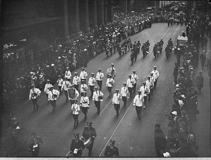 | Keywords: SLNSW 21464 Bands march through streets.jpg en Bands march through streets 27/1/1938 http //www acmssearch sl nsw gov au/search/itemDetailPaged cgi itemID 21464 item <br/>http //www acmssearch sl nsw gov au/search/itemDetailPaged cgi itemID 37473 album <br/>http //www acmssearch sl nsw gov au/search/itemDetailPaged cgi itemID 395018 collection Creator Sam Hood This image may be used freely without requesting permission The State Library of New South Wales http //www acmssearch sl nsw gov au/search/itemPopLarger cgi itemID 21464 requests acknowledgement that the image is from the collections of the State Library of NSW Photographs 32812 images copied from glass and cellulose nitrate photonegatives The Library first purchased a large collection of negatives from Gladys Hood in 1972 This collection which included nitrate negatives which have subsequently been copied at DG 0N4 NCY 28-61 was transferred to a videodisc in 1991 and each image indexed individually Ted Hood assisted with the indexing; images were also identified using surviving studio registers The videodisc known as the Home Away disc or simply the Hood collection was digitised in 1996 and mounted on the Internet with upgraded index records via the online catalogue in December 1998 Purchased from Gladys Hood 1972 Copyright restrictions may apply - Photographs in this collection created before 1955 are all out of copyright Photographs created after 1955 are in copyright for the life of creator plus 70 years ; Please acknowledge - Mitchell Library State Library of New South Wales and Courtesy copyright holder 395018 Sam Hood photographic collection 1916-ca 1955 Approximately 44 800 negatives ; 7 309 photographic prints ; 3 boxes of textual material ; 6 film reels The Library first purchased a large collection of negatives from Gladys Hood in 1972 This collection which included nitrate negatives which have subsequently been copied at DG 0N4 NCY 28-61 was transferred to a videodisc in 1991 and each image indexed individually Ted Hood assisted with the indexing; images were also identified using surviving studio registers The videodisc known as the Home Away disc or simply the Hood collection was digitised in 1996 and mounted on the Internet with upgraded index records via the online catalogue in December 1998 ; Another collection from Sam Hood's studio was purchased in 1993 from Gladys Hood's descendants This comprised 7300 photoprints PXE 789 and ca 12000 negatives ON 204 Digitisation of important photographs in PXE 789 began Mar 2002 but ON 204 has not been digitised and must be viewed at the Library Samuel J Hood's 1872-1953 claimed to have been born 1870 but the South Australian Birth Index gives date as 20 August 1872 His career as a photographer began in the 1880s ; He ran a successful business in ships portraits these negatives are now held by the Australian National Maritime Museum Sydney and portraits of people in the late nineteenth - early twentieth century The State Library has little representation of this period In 1918 he acquired the Dalny Studio at 124 Pitt Street and began to expand his business into press photography providing photographs for the Sydney Mail the Australasian the Daily Guardian the Daily Telegraph Pictorial the Labor Daily the Sun the Daily News and the Sydney Morning Herald Press photography increasingly came to dominate his business and in 1934 he joined the Labor Daily for a short time as a full-time photographer engaging other staff to look after his studio ; By the mid-1930s most newspapers employed their own photographers and Hood's commissions from the papers began to decline Hood sought other kinds of commissions and won a number of long term advertising and commercial contracts He contributed a number of photographs of Sydney buildings and streets to Building Construction and Australasian Engineer during the late 1930s and early 1940s Hood also had extensive contacts in the entertainment industry who called upon him to document celebrity events and stars as well as theatre advertising Throughout his career he worked at the stock-in-trade for commercial photographers portraits weddings and even funerals ; A number of photographers worked for Dalny Studio some of these include Ernie Bowen Gus Daley Jack Lazern Lethington Maitland as well as Sam's own children Gladys and Ted ; For detailed biographical information about photographer Sam Hood see Sydney exposures through the eyes of Sam Hood his Studio 1925-1950 / Alan Davies Sydney State Library of New South Wales 1991 Out of copyright - Created before 1955 Photographs ; Please acknowledge - Mitchell Library State Library of New South Wales advertising photography; commercial photography; photojournalism 395018 Original item no NCY39/543 yes no PD-Australia PD-1996 Australia Images from the State Library of NSW album 37473 SLNSW media uploaded by User 99of9 Photographs by Sam Hood |