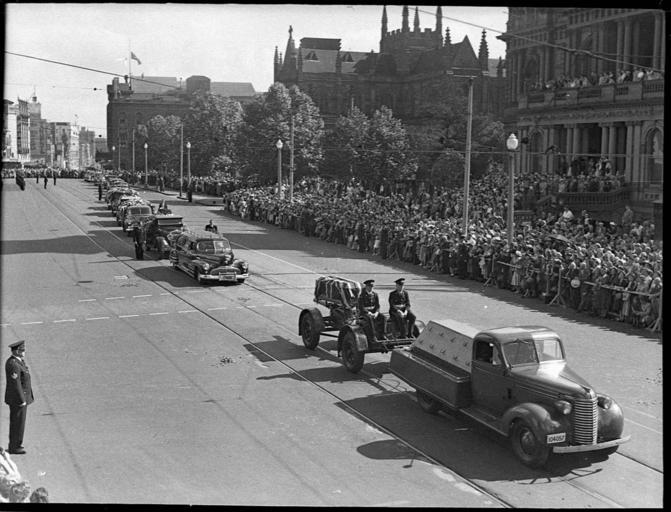 | Keywords: SLNSW 30555 Billy Hughes funeral.jpg en Billy Hughes' funeral 2/11/1952 http //www acmssearch sl nsw gov au/search/itemDetailPaged cgi itemID 30555 item <br/>http //www acmssearch sl nsw gov au/search/itemDetailPaged cgi itemID 37473 album <br/>http //www acmssearch sl nsw gov au/search/itemDetailPaged cgi itemID 395018 collection Creator Sam Hood This image may be used freely without requesting permission The State Library of New South Wales http //www acmssearch sl nsw gov au/search/itemPopLarger cgi itemID 30555 requests acknowledgement that the image is from the collections of the State Library of NSW Photographs 32812 images copied from glass and cellulose nitrate photonegatives The Library first purchased a large collection of negatives from Gladys Hood in 1972 This collection which included nitrate negatives which have subsequently been copied at DG 0N4 NCY 28-61 was transferred to a videodisc in 1991 and each image indexed individually Ted Hood assisted with the indexing; images were also identified using surviving studio registers The videodisc known as the Home Away disc or simply the Hood collection was digitised in 1996 and mounted on the Internet with upgraded index records via the online catalogue in December 1998 Purchased from Gladys Hood 1972 Copyright restrictions may apply - Photographs in this collection created before 1955 are all out of copyright Photographs created after 1955 are in copyright for the life of creator plus 70 years ; Please acknowledge - Mitchell Library State Library of New South Wales and Courtesy copyright holder 395018 Sam Hood photographic collection 1916-ca 1955 Approximately 44 800 negatives ; 7 309 photographic prints ; 3 boxes of textual material ; 6 film reels The Library first purchased a large collection of negatives from Gladys Hood in 1972 This collection which included nitrate negatives which have subsequently been copied at DG 0N4 NCY 28-61 was transferred to a videodisc in 1991 and each image indexed individually Ted Hood assisted with the indexing; images were also identified using surviving studio registers The videodisc known as the Home Away disc or simply the Hood collection was digitised in 1996 and mounted on the Internet with upgraded index records via the online catalogue in December 1998 ; Another collection from Sam Hood's studio was purchased in 1993 from Gladys Hood's descendants This comprised 7300 photoprints PXE 789 and ca 12000 negatives ON 204 Digitisation of important photographs in PXE 789 began Mar 2002 but ON 204 has not been digitised and must be viewed at the Library Samuel J Hood's 1872-1953 claimed to have been born 1870 but the South Australian Birth Index gives date as 20 August 1872 His career as a photographer began in the 1880s ; He ran a successful business in ships portraits these negatives are now held by the Australian National Maritime Museum Sydney and portraits of people in the late nineteenth - early twentieth century The State Library has little representation of this period In 1918 he acquired the Dalny Studio at 124 Pitt Street and began to expand his business into press photography providing photographs for the Sydney Mail the Australasian the Daily Guardian the Daily Telegraph Pictorial the Labor Daily the Sun the Daily News and the Sydney Morning Herald Press photography increasingly came to dominate his business and in 1934 he joined the Labor Daily for a short time as a full-time photographer engaging other staff to look after his studio ; By the mid-1930s most newspapers employed their own photographers and Hood's commissions from the papers began to decline Hood sought other kinds of commissions and won a number of long term advertising and commercial contracts He contributed a number of photographs of Sydney buildings and streets to Building Construction and Australasian Engineer during the late 1930s and early 1940s Hood also had extensive contacts in the entertainment industry who called upon him to document celebrity events and stars as well as theatre advertising Throughout his career he worked at the stock-in-trade for commercial photographers portraits weddings and even funerals ; A number of photographers worked for Dalny Studio some of these include Ernie Bowen Gus Daley Jack Lazern Lethington Maitland as well as Sam's own children Gladys and Ted ; For detailed biographical information about photographer Sam Hood see Sydney exposures through the eyes of Sam Hood his Studio 1925-1950 / Alan Davies Sydney State Library of New South Wales 1991 Out of copyright - Created before 1955 Photographs ; Please acknowledge - Mitchell Library State Library of New South Wales advertising photography; commercial photography; photojournalism 395018 Original item no NCY51/517 yes no PD-Australia PD-1996 Australia Images from the State Library of NSW album 37473 SLNSW media uploaded by User 99of9 Photographs by Sam Hood |