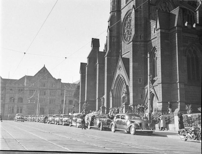 | Keywords: SLNSW 34022 Mrs Megnuss ie Magnus funeral St Marys Cathedral.jpg en Mrs Megnus's i e Magnus funeral St Mary's Cathedral January 1941 http //www acmssearch sl nsw gov au/search/itemDetailPaged cgi itemID 34022 item <br/>http //www acmssearch sl nsw gov au/search/itemDetailPaged cgi itemID 37473 album <br/>http //www acmssearch sl nsw gov au/search/itemDetailPaged cgi itemID 395018 collection Creator Sam Hood This image may be used freely without requesting permission The State Library of New South Wales http //www acmssearch sl nsw gov au/search/itemPopLarger cgi itemID 34022 requests acknowledgement that the image is from the collections of the State Library of NSW Photographs 32812 images copied from glass and cellulose nitrate photonegatives The Library first purchased a large collection of negatives from Gladys Hood in 1972 This collection which included nitrate negatives which have subsequently been copied at DG 0N4 NCY 28-61 was transferred to a videodisc in 1991 and each image indexed individually Ted Hood assisted with the indexing; images were also identified using surviving studio registers The videodisc known as the Home Away disc or simply the Hood collection was digitised in 1996 and mounted on the Internet with upgraded index records via the online catalogue in December 1998 Purchased from Gladys Hood 1972 Copyright restrictions may apply - Photographs in this collection created before 1955 are all out of copyright Photographs created after 1955 are in copyright for the life of creator plus 70 years ; Please acknowledge - Mitchell Library State Library of New South Wales and Courtesy copyright holder 395018 Sam Hood photographic collection 1916-ca 1955 Approximately 44 800 negatives ; 7 309 photographic prints ; 3 boxes of textual material ; 6 film reels The Library first purchased a large collection of negatives from Gladys Hood in 1972 This collection which included nitrate negatives which have subsequently been copied at DG 0N4 NCY 28-61 was transferred to a videodisc in 1991 and each image indexed individually Ted Hood assisted with the indexing; images were also identified using surviving studio registers The videodisc known as the Home Away disc or simply the Hood collection was digitised in 1996 and mounted on the Internet with upgraded index records via the online catalogue in December 1998 ; Another collection from Sam Hood's studio was purchased in 1993 from Gladys Hood's descendants This comprised 7300 photoprints PXE 789 and ca 12000 negatives ON 204 Digitisation of important photographs in PXE 789 began Mar 2002 but ON 204 has not been digitised and must be viewed at the Library Samuel J Hood's 1872-1953 claimed to have been born 1870 but the South Australian Birth Index gives date as 20 August 1872 His career as a photographer began in the 1880s ; He ran a successful business in ships portraits these negatives are now held by the Australian National Maritime Museum Sydney and portraits of people in the late nineteenth - early twentieth century The State Library has little representation of this period In 1918 he acquired the Dalny Studio at 124 Pitt Street and began to expand his business into press photography providing photographs for the Sydney Mail the Australasian the Daily Guardian the Daily Telegraph Pictorial the Labor Daily the Sun the Daily News and the Sydney Morning Herald Press photography increasingly came to dominate his business and in 1934 he joined the Labor Daily for a short time as a full-time photographer engaging other staff to look after his studio ; By the mid-1930s most newspapers employed their own photographers and Hood's commissions from the papers began to decline Hood sought other kinds of commissions and won a number of long term advertising and commercial contracts He contributed a number of photographs of Sydney buildings and streets to Building Construction and Australasian Engineer during the late 1930s and early 1940s Hood also had extensive contacts in the entertainment industry who called upon him to document celebrity events and stars as well as theatre advertising Throughout his career he worked at the stock-in-trade for commercial photographers portraits weddings and even funerals ; A number of photographers worked for Dalny Studio some of these include Ernie Bowen Gus Daley Jack Lazern Lethington Maitland as well as Sam's own children Gladys and Ted ; For detailed biographical information about photographer Sam Hood see Sydney exposures through the eyes of Sam Hood his Studio 1925-1950 / Alan Davies Sydney State Library of New South Wales 1991 Out of copyright - Created before 1955 Photographs ; Please acknowledge - Mitchell Library State Library of New South Wales advertising photography; commercial photography; photojournalism 395018 Original item no NCY58/331 yes no PD-Australia PD-1996 Australia Images from the State Library of NSW album 37473 SLNSW media uploaded by User 99of9 Photographs by Sam Hood |