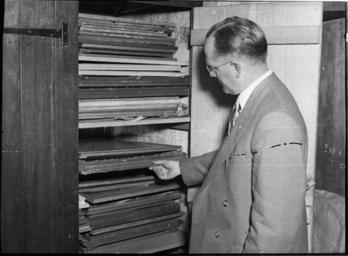 | Keywords: SLNSW 34558 Town Clerk Mr Burges with paintings Pote Collection.jpg en Town Clerk Mr Burges with paintings Pote Collection 23/5/1956 http //www acmssearch sl nsw gov au/search/itemDetailPaged cgi itemID 34558 item <br/>http //www acmssearch sl nsw gov au/search/itemDetailPaged cgi itemID 37473 album <br/>http //www acmssearch sl nsw gov au/search/itemDetailPaged cgi itemID 395018 collection Creator Sam Hood This image may be used freely without requesting permission The State Library of New South Wales http //www acmssearch sl nsw gov au/search/itemPopLarger cgi itemID 34558 requests acknowledgement that the image is from the collections of the State Library of NSW Photographs 32812 images copied from glass and cellulose nitrate photonegatives The Library first purchased a large collection of negatives from Gladys Hood in 1972 This collection which included nitrate negatives which have subsequently been copied at DG 0N4 NCY 28-61 was transferred to a videodisc in 1991 and each image indexed individually Ted Hood assisted with the indexing; images were also identified using surviving studio registers The videodisc known as the Home Away disc or simply the Hood collection was digitised in 1996 and mounted on the Internet with upgraded index records via the online catalogue in December 1998 Purchased from Gladys Hood 1972 Copyright restrictions may apply - Photographs in this collection created before 1955 are all out of copyright Photographs created after 1955 are in copyright for the life of creator plus 70 years ; Please acknowledge - Mitchell Library State Library of New South Wales and Courtesy copyright holder 395018 Sam Hood photographic collection 1916-ca 1955 Approximately 44 800 negatives ; 7 309 photographic prints ; 3 boxes of textual material ; 6 film reels The Library first purchased a large collection of negatives from Gladys Hood in 1972 This collection which included nitrate negatives which have subsequently been copied at DG 0N4 NCY 28-61 was transferred to a videodisc in 1991 and each image indexed individually Ted Hood assisted with the indexing; images were also identified using surviving studio registers The videodisc known as the Home Away disc or simply the Hood collection was digitised in 1996 and mounted on the Internet with upgraded index records via the online catalogue in December 1998 ; Another collection from Sam Hood's studio was purchased in 1993 from Gladys Hood's descendants This comprised 7300 photoprints PXE 789 and ca 12000 negatives ON 204 Digitisation of important photographs in PXE 789 began Mar 2002 but ON 204 has not been digitised and must be viewed at the Library Samuel J Hood's 1872-1953 claimed to have been born 1870 but the South Australian Birth Index gives date as 20 August 1872 His career as a photographer began in the 1880s ; He ran a successful business in ships portraits these negatives are now held by the Australian National Maritime Museum Sydney and portraits of people in the late nineteenth - early twentieth century The State Library has little representation of this period In 1918 he acquired the Dalny Studio at 124 Pitt Street and began to expand his business into press photography providing photographs for the Sydney Mail the Australasian the Daily Guardian the Daily Telegraph Pictorial the Labor Daily the Sun the Daily News and the Sydney Morning Herald Press photography increasingly came to dominate his business and in 1934 he joined the Labor Daily for a short time as a full-time photographer engaging other staff to look after his studio ; By the mid-1930s most newspapers employed their own photographers and Hood's commissions from the papers began to decline Hood sought other kinds of commissions and won a number of long term advertising and commercial contracts He contributed a number of photographs of Sydney buildings and streets to Building Construction and Australasian Engineer during the late 1930s and early 1940s Hood also had extensive contacts in the entertainment industry who called upon him to document celebrity events and stars as well as theatre advertising Throughout his career he worked at the stock-in-trade for commercial photographers portraits weddings and even funerals ; A number of photographers worked for Dalny Studio some of these include Ernie Bowen Gus Daley Jack Lazern Lethington Maitland as well as Sam's own children Gladys and Ted ; For detailed biographical information about photographer Sam Hood see Sydney exposures through the eyes of Sam Hood his Studio 1925-1950 / Alan Davies Sydney State Library of New South Wales 1991 Out of copyright - Created before 1955 Photographs ; Please acknowledge - Mitchell Library State Library of New South Wales advertising photography; commercial photography; photojournalism 395018 Original item no NCY55/680 yes no PD-Australia PD-1996 Australia Images from the State Library of NSW album 37473 SLNSW media uploaded by User 99of9 Photographs by Sam Hood |