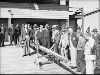 | Keywords: SLNSW 35315 Christening of boat at police sheds for Cecil Pearce.jpg en Christening of boat at police sheds for Cecil Pearce s 1930 http //www acmssearch sl nsw gov au/search/itemDetailPaged cgi itemID 35315 item <br/>http //www acmssearch sl nsw gov au/search/itemDetailPaged cgi itemID 37473 album <br/>http //www acmssearch sl nsw gov au/search/itemDetailPaged cgi itemID 395018 collection Creator Sam Hood This image may be used freely without requesting permission The State Library of New South Wales http //www acmssearch sl nsw gov au/search/itemPopLarger cgi itemID 35315 requests acknowledgement that the image is from the collections of the State Library of NSW Photographs 32812 images copied from glass and cellulose nitrate photonegatives The Library first purchased a large collection of negatives from Gladys Hood in 1972 This collection which included nitrate negatives which have subsequently been copied at DG 0N4 NCY 28-61 was transferred to a videodisc in 1991 and each image indexed individually Ted Hood assisted with the indexing; images were also identified using surviving studio registers The videodisc known as the Home Away disc or simply the Hood collection was digitised in 1996 and mounted on the Internet with upgraded index records via the online catalogue in December 1998 Purchased from Gladys Hood 1972 Copyright restrictions may apply - Photographs in this collection created before 1955 are all out of copyright Photographs created after 1955 are in copyright for the life of creator plus 70 years ; Please acknowledge - Mitchell Library State Library of New South Wales and Courtesy copyright holder 395018 Sam Hood photographic collection 1916-ca 1955 Approximately 44 800 negatives ; 7 309 photographic prints ; 3 boxes of textual material ; 6 film reels The Library first purchased a large collection of negatives from Gladys Hood in 1972 This collection which included nitrate negatives which have subsequently been copied at DG 0N4 NCY 28-61 was transferred to a videodisc in 1991 and each image indexed individually Ted Hood assisted with the indexing; images were also identified using surviving studio registers The videodisc known as the Home Away disc or simply the Hood collection was digitised in 1996 and mounted on the Internet with upgraded index records via the online catalogue in December 1998 ; Another collection from Sam Hood's studio was purchased in 1993 from Gladys Hood's descendants This comprised 7300 photoprints PXE 789 and ca 12000 negatives ON 204 Digitisation of important photographs in PXE 789 began Mar 2002 but ON 204 has not been digitised and must be viewed at the Library Samuel J Hood's 1872-1953 claimed to have been born 1870 but the South Australian Birth Index gives date as 20 August 1872 His career as a photographer began in the 1880s ; He ran a successful business in ships portraits these negatives are now held by the Australian National Maritime Museum Sydney and portraits of people in the late nineteenth - early twentieth century The State Library has little representation of this period In 1918 he acquired the Dalny Studio at 124 Pitt Street and began to expand his business into press photography providing photographs for the Sydney Mail the Australasian the Daily Guardian the Daily Telegraph Pictorial the Labor Daily the Sun the Daily News and the Sydney Morning Herald Press photography increasingly came to dominate his business and in 1934 he joined the Labor Daily for a short time as a full-time photographer engaging other staff to look after his studio ; By the mid-1930s most newspapers employed their own photographers and Hood's commissions from the papers began to decline Hood sought other kinds of commissions and won a number of long term advertising and commercial contracts He contributed a number of photographs of Sydney buildings and streets to Building Construction and Australasian Engineer during the late 1930s and early 1940s Hood also had extensive contacts in the entertainment industry who called upon him to document celebrity events and stars as well as theatre advertising Throughout his career he worked at the stock-in-trade for commercial photographers portraits weddings and even funerals ; A number of photographers worked for Dalny Studio some of these include Ernie Bowen Gus Daley Jack Lazern Lethington Maitland as well as Sam's own children Gladys and Ted ; For detailed biographical information about photographer Sam Hood see Sydney exposures through the eyes of Sam Hood his Studio 1925-1950 / Alan Davies Sydney State Library of New South Wales 1991 Out of copyright - Created before 1955 Photographs ; Please acknowledge - Mitchell Library State Library of New South Wales advertising photography; commercial photography; photojournalism 395018 Original item no NCY57/224 yes no PD-Australia PD-1996 Australia Images from the State Library of NSW album 37473 SLNSW media uploaded by User 99of9 Photographs by Sam Hood |