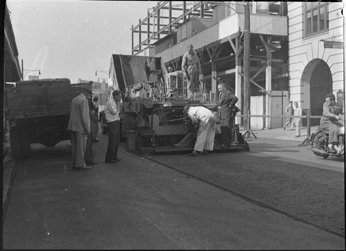 | Keywords: SLNSW 41372 Tar paving machine Newcastle City Engineer Mr Baddeley right examines the operation of a new bituminous paving finishing machine being used by City Council.jpg en Tar paving machine Newcastle City Engineer Mr Baddeley right examines the operation of a new bituminous paving finishing machine being used by City Council 3/6/1957 http //www acmssearch sl nsw gov au/search/itemDetailPaged cgi itemID 41372 item <br/>http //www acmssearch sl nsw gov au/search/itemDetailPaged cgi itemID 37473 album <br/>http //www acmssearch sl nsw gov au/search/itemDetailPaged cgi itemID 395018 collection Creator Sam Hood This image may be used freely without requesting permission The State Library of New South Wales http //www acmssearch sl nsw gov au/search/itemPopLarger cgi itemID 41372 requests acknowledgement that the image is from the collections of the State Library of NSW Photographs 32812 images copied from glass and cellulose nitrate photonegatives The Library first purchased a large collection of negatives from Gladys Hood in 1972 This collection which included nitrate negatives which have subsequently been copied at DG 0N4 NCY 28-61 was transferred to a videodisc in 1991 and each image indexed individually Ted Hood assisted with the indexing; images were also identified using surviving studio registers The videodisc known as the Home Away disc or simply the Hood collection was digitised in 1996 and mounted on the Internet with upgraded index records via the online catalogue in December 1998 Purchased from Gladys Hood 1972 Copyright restrictions may apply - Photographs in this collection created before 1955 are all out of copyright Photographs created after 1955 are in copyright for the life of creator plus 70 years ; Please acknowledge - Mitchell Library State Library of New South Wales and Courtesy copyright holder 395018 Sam Hood photographic collection 1916-ca 1955 Approximately 44 800 negatives ; 7 309 photographic prints ; 3 boxes of textual material ; 6 film reels The Library first purchased a large collection of negatives from Gladys Hood in 1972 This collection which included nitrate negatives which have subsequently been copied at DG 0N4 NCY 28-61 was transferred to a videodisc in 1991 and each image indexed individually Ted Hood assisted with the indexing; images were also identified using surviving studio registers The videodisc known as the Home Away disc or simply the Hood collection was digitised in 1996 and mounted on the Internet with upgraded index records via the online catalogue in December 1998 ; Another collection from Sam Hood's studio was purchased in 1993 from Gladys Hood's descendants This comprised 7300 photoprints PXE 789 and ca 12000 negatives ON 204 Digitisation of important photographs in PXE 789 began Mar 2002 but ON 204 has not been digitised and must be viewed at the Library Samuel J Hood's 1872-1953 claimed to have been born 1870 but the South Australian Birth Index gives date as 20 August 1872 His career as a photographer began in the 1880s ; He ran a successful business in ships portraits these negatives are now held by the Australian National Maritime Museum Sydney and portraits of people in the late nineteenth - early twentieth century The State Library has little representation of this period In 1918 he acquired the Dalny Studio at 124 Pitt Street and began to expand his business into press photography providing photographs for the Sydney Mail the Australasian the Daily Guardian the Daily Telegraph Pictorial the Labor Daily the Sun the Daily News and the Sydney Morning Herald Press photography increasingly came to dominate his business and in 1934 he joined the Labor Daily for a short time as a full-time photographer engaging other staff to look after his studio ; By the mid-1930s most newspapers employed their own photographers and Hood's commissions from the papers began to decline Hood sought other kinds of commissions and won a number of long term advertising and commercial contracts He contributed a number of photographs of Sydney buildings and streets to Building Construction and Australasian Engineer during the late 1930s and early 1940s Hood also had extensive contacts in the entertainment industry who called upon him to document celebrity events and stars as well as theatre advertising Throughout his career he worked at the stock-in-trade for commercial photographers portraits weddings and even funerals ; A number of photographers worked for Dalny Studio some of these include Ernie Bowen Gus Daley Jack Lazern Lethington Maitland as well as Sam's own children Gladys and Ted ; For detailed biographical information about photographer Sam Hood see Sydney exposures through the eyes of Sam Hood his Studio 1925-1950 / Alan Davies Sydney State Library of New South Wales 1991 Out of copyright - Created before 1955 Photographs ; Please acknowledge - Mitchell Library State Library of New South Wales advertising photography; commercial photography; photojournalism 395018 Original item no NCY56/592 yes no PD-Australia PD-1996 Australia Images from the State Library of NSW album 37473 SLNSW media uploaded by User 99of9 Photographs by Sam Hood |