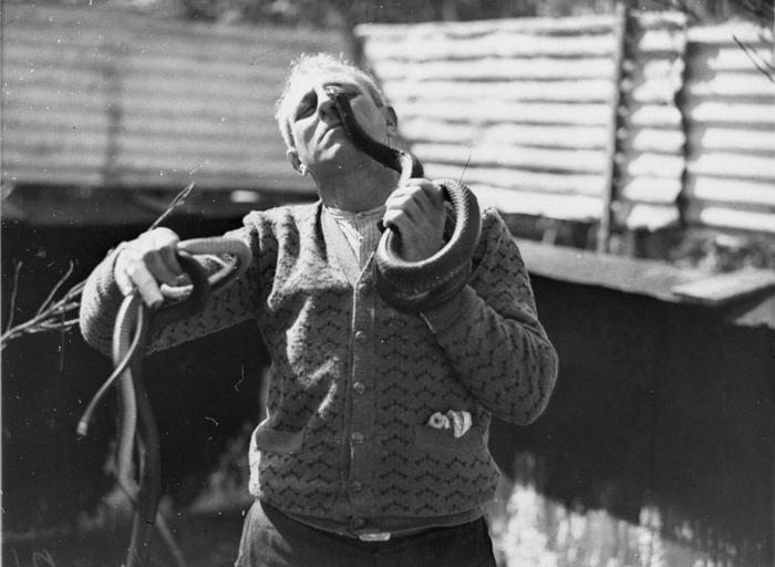 | Keywords: SLNSW 42401 George Cann eyeball to eyeball with a black snake.jpg en George Cann eyeball to eyeball with a black snake 1934-09-05 http //www acmssearch sl nsw gov au/search/itemDetailPaged cgi itemID 42401 item <br/>http //www acmssearch sl nsw gov au/search/itemDetailPaged cgi itemID 37473 album <br/>http //www acmssearch sl nsw gov au/search/itemDetailPaged cgi itemID 395018 collection Hood Ted 1911-2000 This image may be used freely without requesting permission The State Library of New South Wales http //www acmssearch sl nsw gov au/search/itemPopLarger cgi itemID 42401 requests acknowledgement that the image is from the collections of the State Library of NSW Photographs 32812 images copied from glass and cellulose nitrate photonegatives The Library first purchased a large collection of negatives from Gladys Hood in 1972 This collection which included nitrate negatives which have subsequently been copied at DG 0N4 NCY 28-61 was transferred to a videodisc in 1991 and each image indexed individually Ted Hood assisted with the indexing; images were also identified using surviving studio registers The videodisc known as the Home Away disc or simply the Hood collection was digitised in 1996 and mounted on the Internet with upgraded index records via the online catalogue in December 1998 Purchased from Gladys Hood 1972 Copyright restrictions may apply - Photographs in this collection created before 1955 are all out of copyright Photographs created after 1955 are in copyright for the life of creator plus 70 years ; Please acknowledge - Mitchell Library State Library of New South Wales and Courtesy copyright holder 395018 Sam Hood photographic collection 1916-ca 1955 Approximately 44 800 negatives ; 7 309 photographic prints ; 3 boxes of textual material ; 6 film reels The Library first purchased a large collection of negatives from Gladys Hood in 1972 This collection which included nitrate negatives which have subsequently been copied at DG 0N4 NCY 28-61 was transferred to a videodisc in 1991 and each image indexed individually Ted Hood assisted with the indexing; images were also identified using surviving studio registers The videodisc known as the Home Away disc or simply the Hood collection was digitised in 1996 and mounted on the Internet with upgraded index records via the online catalogue in December 1998 ; Another collection from Sam Hood's studio was purchased in 1993 from Gladys Hood's descendants This comprised 7300 photoprints PXE 789 and ca 12000 negatives ON 204 Digitisation of important photographs in PXE 789 began Mar 2002 but ON 204 has not been digitised and must be viewed at the Library Samuel J Hood's 1872-1953 claimed to have been born 1870 but the South Australian Birth Index gives date as 20 August 1872 His career as a photographer began in the 1880s ; He ran a successful business in ships portraits these negatives are now held by the Australian National Maritime Museum Sydney and portraits of people in the late nineteenth - early twentieth century The State Library has little representation of this period In 1918 he acquired the Dalny Studio at 124 Pitt Street and began to expand his business into press photography providing photographs for the Sydney Mail the Australasian the Daily Guardian the Daily Telegraph Pictorial the Labor Daily the Sun the Daily News and the Sydney Morning Herald Press photography increasingly came to dominate his business and in 1934 he joined the Labor Daily for a short time as a full-time photographer engaging other staff to look after his studio ; By the mid-1930s most newspapers employed their own photographers and Hood's commissions from the papers began to decline Hood sought other kinds of commissions and won a number of long term advertising and commercial contracts He contributed a number of photographs of Sydney buildings and streets to Building Construction and Australasian Engineer during the late 1930s and early 1940s Hood also had extensive contacts in the entertainment industry who called upon him to document celebrity events and stars as well as theatre advertising Throughout his career he worked at the stock-in-trade for commercial photographers portraits weddings and even funerals ; A number of photographers worked for Dalny Studio some of these include Ernie Bowen Gus Daley Jack Lazern Lethington Maitland as well as Sam's own children Gladys and Ted ; For detailed biographical information about photographer Sam Hood see Sydney exposures through the eyes of Sam Hood his Studio 1925-1950 / Alan Davies Sydney State Library of New South Wales 1991 Out of copyright - Created before 1955 Photographs ; Please acknowledge - Mitchell Library State Library of New South Wales advertising photography; commercial photography; photojournalism 395018 Original item no DG ON4/391 SLNSW-image 42401 yes PD-Australia PD-1996 Australia Images from the State Library of NSW album 37473 SLNSW media uploaded by User 99of9 Photographs by Sam Hood |