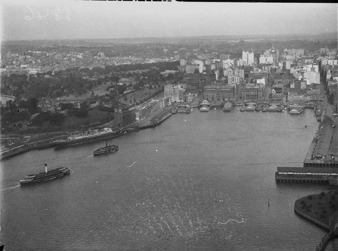 View Original:SLNSW 51277 View of Circular Quay from north side creepercrane of Sydney Harbour Bridge.jpg (1400x1040)