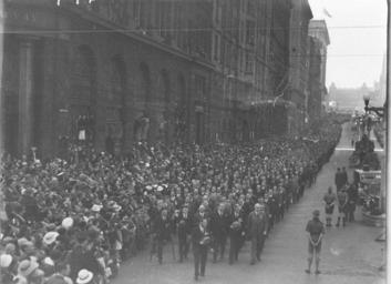 Keywords: SLNSW 9091 Veterans march past the Cenotaph with hats over heart.jpg en Veterans march past the Cenotaph with hats over heart circa 1935 http //www acmssearch sl nsw gov au/search/itemDetailPaged cgi itemID 9091 item <br/>http //www acmssearch sl nsw gov au/search/itemDetailPaged cgi itemID 37473 album <br/>http //www acmssearch sl nsw gov au/search/itemDetailPaged cgi itemID 395018 collection Creator Sam Hood This image may be used freely without requesting permission The State Library of New South Wales http //www acmssearch sl nsw gov au/search/itemPopLarger cgi itemID 9091 requests acknowledgement that the image is from the collections of the State Library of NSW User 99of9/SLNSW_extra_metadata_template 9091 Veterans march past the Cenotaph with hats over heart Home and Away - 4919 about 1935 Photographs 32812 images copied from glass and cellulose nitrate photonegatives The Library first purchased a large collection of negatives from Gladys Hood in 1972 This collection which included nitrate negatives which have subsequently been copied at DG 0N4 NCY 28-61 was transferred to a videodisc in 1991 and each image indexed individually Ted Hood assisted with the indexing; images were also identified using surviving studio registers The videodisc known as the Home Away disc or simply the Hood collection was digitised in 1996 and mounted on the Internet with upgraded index records via the online catalogue in December 1998 Purchased from Gladys Hood 1972 Copyright restrictions may apply - Photographs in this collection created before 1955 are all out of copyright Photographs created after 1955 are in copyright for the life of creator plus 70 years ; Please acknowledge - Mitchell Library State Library of New South Wales and Courtesy copyright holder 395018 Sam Hood photographic collection 1916-ca 1955 Approximately 44 800 negatives ; 7 309 photographic prints ; 3 boxes of textual material ; 6 film reels The Library first purchased a large collection of negatives from Gladys Hood in 1972 This collection which included nitrate negatives which have subsequently been copied at DG 0N4 NCY 28-61 was transferred to a videodisc in 1991 and each image indexed individually Ted Hood assisted with the indexing; images were also identified using surviving studio registers The videodisc known as the Home Away disc or simply the Hood collection was digitised in 1996 and mounted on the Internet with upgraded index records via the online catalogue in December 1998 ; Another collection from Sam Hood's studio was purchased in 1993 from Gladys Hood's descendants This comprised 7300 photoprints PXE 789 and ca 12000 negatives ON 204 Digitisation of important photographs in PXE 789 began Mar 2002 but ON 204 has not been digitised and must be viewed at the Library Samuel J Hood's 1872-1953 claimed to have been born 1870 but the South Australian Birth Index gives date as 20 August 1872 His career as a photographer began in the 1880s ; He ran a successful business in ships portraits these negatives are now held by the Australian National Maritime Museum Sydney and portraits of people in the late nineteenth - early twentieth century The State Library has little representation of this period In 1918 he acquired the Dalny Studio at 124 Pitt Street and began to expand his business into press photography providing photographs for the Sydney Mail the Australasian the Daily Guardian the Daily Telegraph Pictorial the Labor Daily the Sun the Daily News and the Sydney Morning Herald Press photography increasingly came to dominate his business and in 1934 he joined the Labor Daily for a short time as a full-time photographer engaging other staff to look after his studio ; By the mid-1930s most newspapers employed their own photographers and Hood's commissions from the papers began to decline Hood sought other kinds of commissions and won a number of long term advertising and commercial contracts He contributed a number of photographs of Sydney buildings and streets to Building Construction and Australasian Engineer during the late 1930s and early 1940s Hood also had extensive contacts in the entertainment industry who called upon him to document celebrity events and stars as well as theatre advertising Throughout his career he worked at the stock-in-trade for commercial photographers portraits weddings and even funerals ; A number of photographers worked for Dalny Studio some of these include Ernie Bowen Gus Daley Jack Lazern Lethington Maitland as well as Sam's own children Gladys and Ted ; For detailed biographical information about photographer Sam Hood see Sydney exposures through the eyes of Sam Hood his Studio 1925-1950 / Alan Davies Sydney State Library of New South Wales 1991 Out of copyright - Created before 1955 Photographs ; Please acknowledge - Mitchell Library State Library of New South Wales advertising photography; commercial photography; photojournalism 395018 Original item no DG ON4/4919 yes no PD-Australia PD-1996 Australia Images from the State Library of NSW album 37473 SLNSW media uploaded by User 99of9 Photographs by Sam Hood |