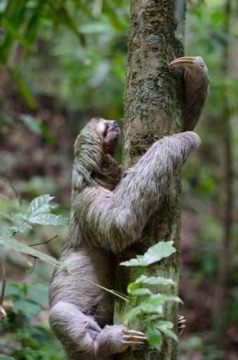 Keywords: sloth tree forest animal mammal wildlife jungle hanging rainforest climbing endangered